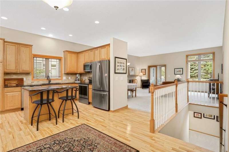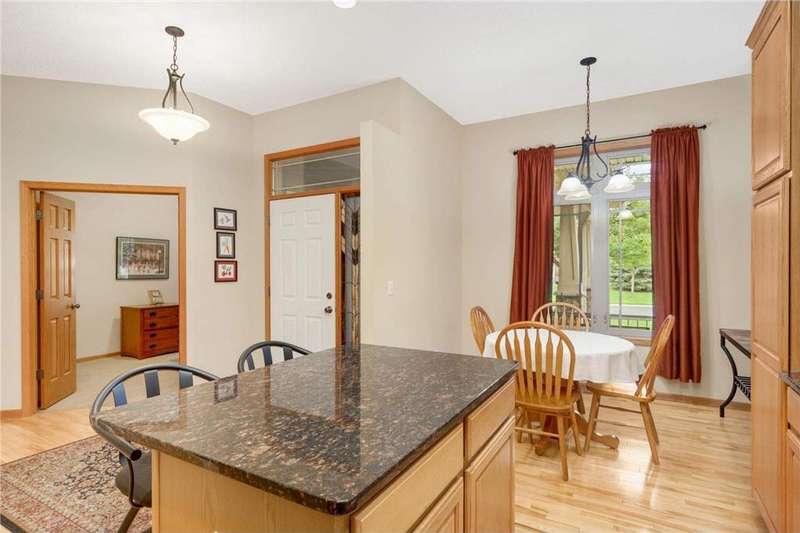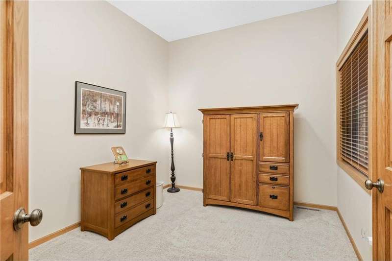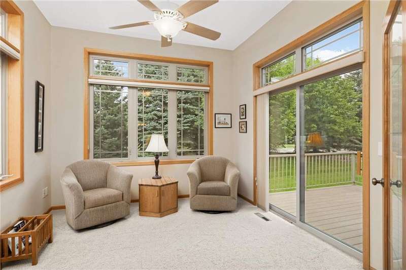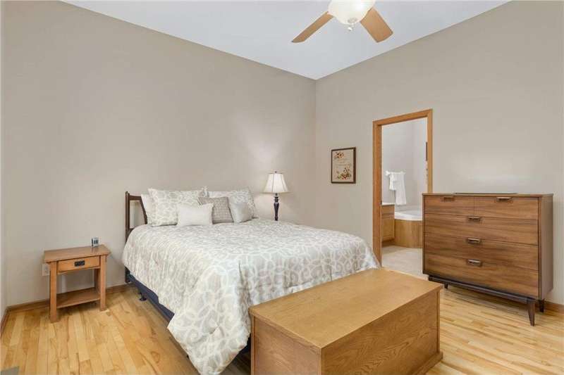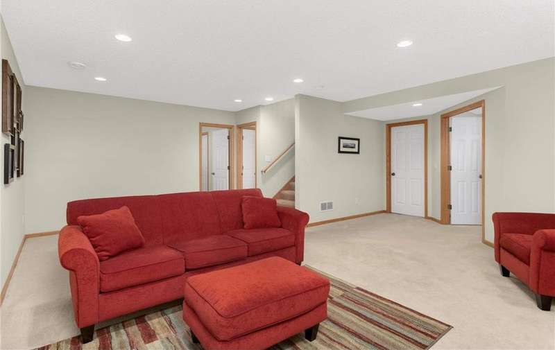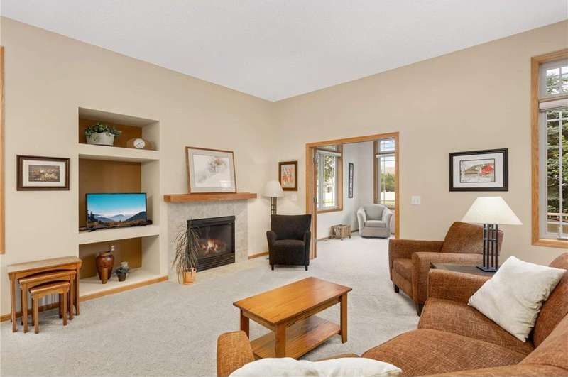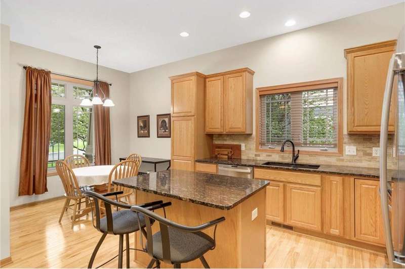 Beautifully Maintained One-Level Living. Welcome to this fantastic one owner townhome that shines! The main level offers an open layout with gleaming wood floors, six-panel doors, and soaring ceilings that create a warm and inviting feel. You’ll find two bedrooms on the main level, including a spacious primary suite, a home office, plus a sunroom and easy access to laundry for true main-level living. The finished lower level provides flexibility with two additional bedrooms, a 3/4 bath, and a large family room—perfect for guests, hobbies, or entertaining. Step outside to your private backyard and enjoy relaxing in a peaceful setting. Located just minutes from Target’s North Campus and close to shopping, dining, and major routes, this home combines convenience with low-maintenance living. Lovingly cared for and move-in ready. Welcome home!