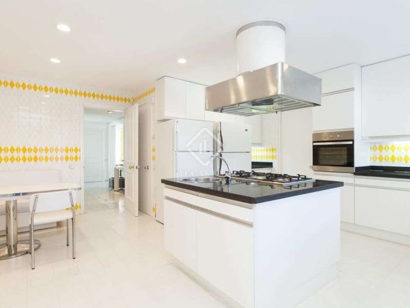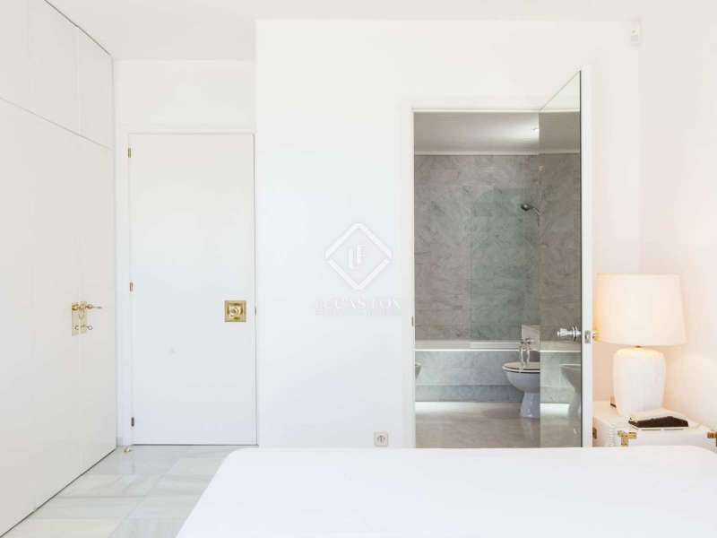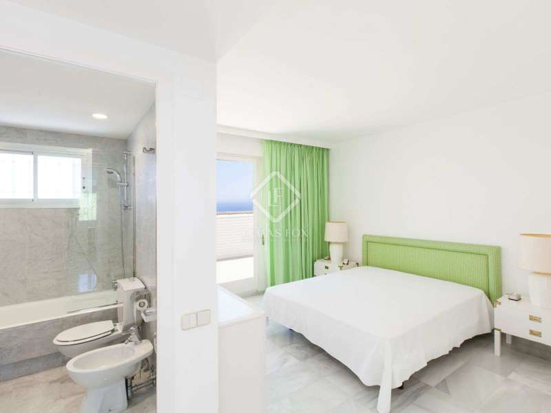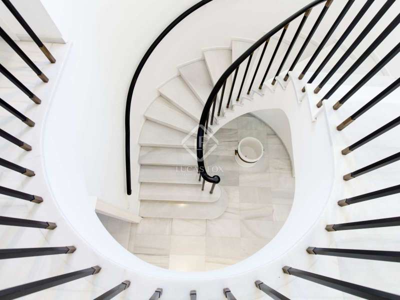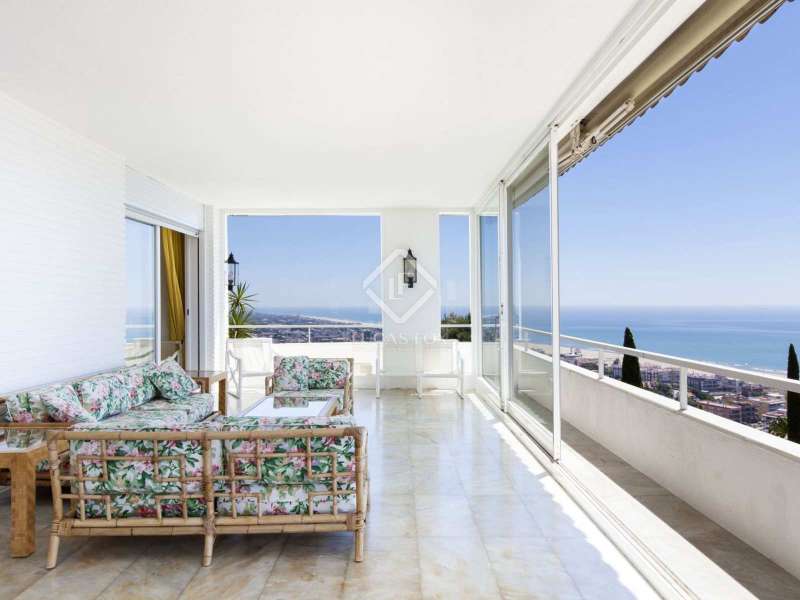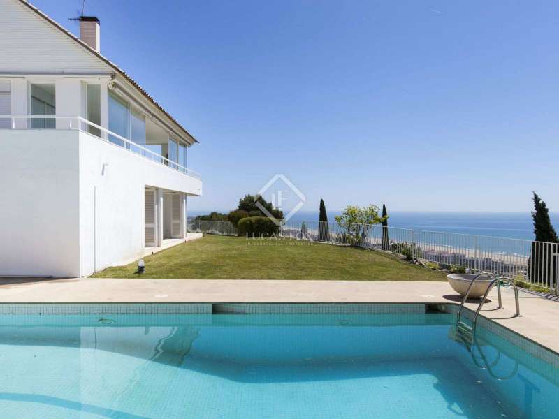 This completely private, peaceful property was constructed in 1981 and is a traditional Spanish villa from that period. It offers 4 double bedrooms with en-suite bathrooms, 1 single bedroom and 1 staff bedroom with a bathroom. There is marble flooring throughout and a central fireplace and beautiful spiral staircase add character and charm to the property. The house is very spacious and finished with high quality materials and only requires light renovation and updating to create a sensational exclusive beach villa. The entire house boasts spectacular panoramic sea views (from El Prat de Llobregat to Sitges), overlooking the beach of Castelldefels and Port Ginesta. In front of the entrance of the house there is a covered parking area for 4 cars and the entrance to a garage for 1 car, and there are 2 additional large garages with entrance on the street below the property (suitable to 4-6 cars). In the basement of the villa we find a wonderful, large bodega and an indoor squash court. Behind the house there is a generous flat garden, with a large swimming pool overlooking the Mediterranean Sea. This property is in one of the most sought-after areas of Castelldefels, on one of the best plots of the exclusive Bellamar residential area with famous neighbours such as Messi, Suarez, Gasol.