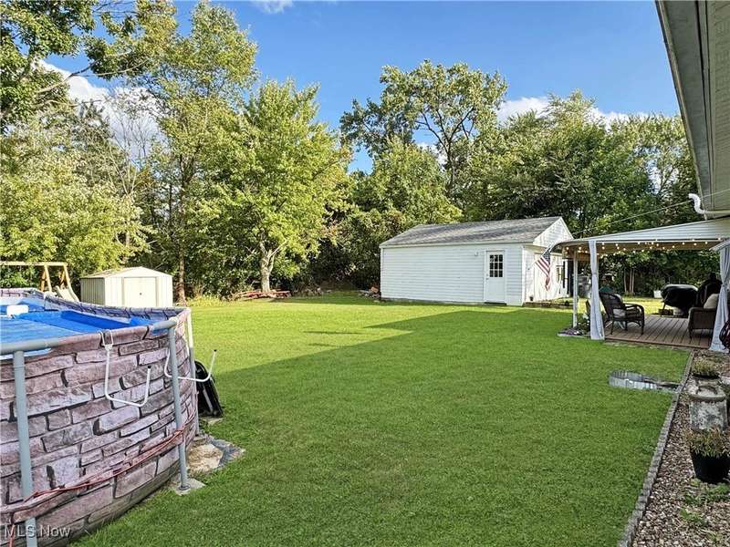 Charming Brunswick ranch offering comfort, convenience, and peace of mind for years to come. Move-in ready and well-cared for by the same responsible owner since 2003. This 3-bedroom home features a spacious primary bedroom expanded by opening the wall to the adjoining room (easily returned to original if desired, many will like the larger layout). The recently updated back patio with new decking is perfect for relaxing in the breeze or hosting a BBQ. Sitting on a .38-acre lot, the property includes a detached 2-car garage, storage shed, fencing for privacy, and an above-ground swimming pool with a lounging deck. Come see this solid, easygoing home in a quiet spot, ready for its next chapter!