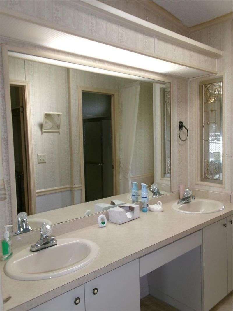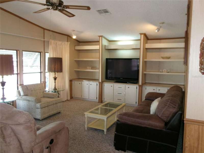 55+ Active Community Furnished Home that's ready to be your sunny winter home or year round residence! It is one of the larger homes in the neighborhood, over 1430 sq ft, with 2 bedroom suites, separate Living & Family rooms, many built-in cabinets, Large Dining area, Kitchen with closet pantry, breakfast bar & adjoining Dinette area, inside Laundry room, and a relaxing Florida Room/porch that has both screens & windows & separate AC. What more could you want? Oh, yes, the attached carport with room for your golf cart, and includes a convenient ramp entry to the home (or removable with stairs still there), and storage shed with workbench. This home has a Good condition 9 year old roof & 10 year old AC, and water filtration system recently serviced. The HOA is under $76 per month! The seller requests the sale to be SOLD AS-IS. Foxwood Lake Estates Senior community is quiet and friendly with so many amenities & activities: Heated community pool & spa, sauna, huge clubhouse, fitness center, library, shuffleboard & bocce courts, pickleball, billiards, a central lake with a beautiful fountain, surrounding walking trail & limited fishing is allowed. Golf carts are welcomed! The Social Club offers many activities to join: weekly bingo, weekly coffee hour, scheduled breakfasts & flea markets, crafts, cards, entertainment and much more. Such a fun place to live! Call to see it today!