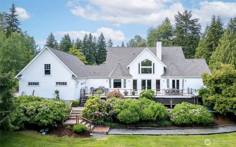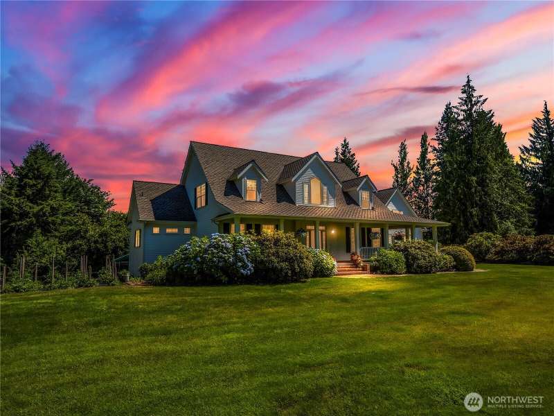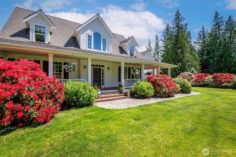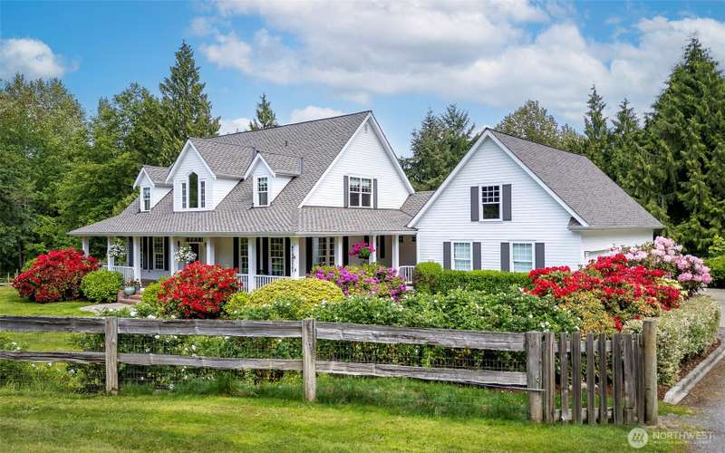 New Price! Welcome to this picture-perfect retreat on just under 5 acres of fenced, beautifully landscaped grounds. Bursting with color from mature flowering shrubs and lush gardens, this is a nature lover’s dream-complete with tranquil pond and a sprinkler system to keep everything thriving. Enjoy summer days from the expansive back deck or a quiet morning coffee on the charming wraparound porch. Inside, you'll find a well-maintained and thoughtfully designed interior with a spacious chef’s kitchen, newer heat pump for year-round comfort, new 50-year roof and a brand-new finished space above the 3-car garage-ideal for a home office or creative studio. Don't miss this rare combination of privacy, beauty and function!