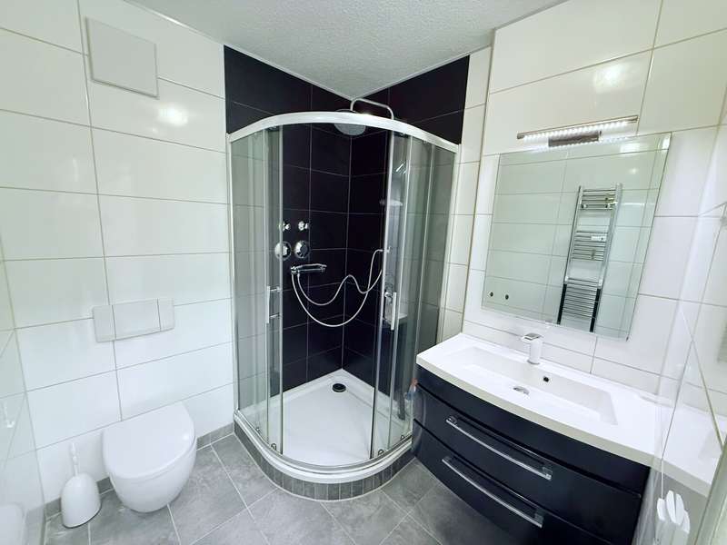 This centrally located and well-let 2-room first floor apartment with a separate, ground-floor entrance represents a solid investment for investors and at the same time offers the ideal opportunity for owner-occupiers looking for a light-flooded home. The apartment impresses with its well thought-out room layout, which enables harmonious and comfortable living and at the same time offers many design options. Particularly noteworthy is the bright and spacious living and dining area with integrated kitchen, which invites you to spend cozy hours and relaxing evenings. The practical hallway with a visually appealing partition wall also creates a clearly structured entrance area that also offers storage space. The bedroom is in a quiet location and offers enough space for wardrobes or individual furnishing ideas. The modern bathroom impresses with large tiles, an elegant sliding glass door and high-quality fittings. The carport parking space, which can be purchased for an additional €10,000.00, also provides extra convenience and security when parking. This would result in a total purchase price of €193,000.00. An existing storage room offers practical storage space for supplies and household utensils, making the apartment functionally well-equipped. In 2019, after extensive modernization (floors, doors, bathroom, paint, etc.), the fitted kitchen with ceramic hob, oven and dishwasher was also renewed - this is already included in the purchase price. The apartment is located in the immediate vicinity of Neugablonz city center, so that shopping facilities for daily needs, restaurants, cafés and various leisure activities are within easy walking distance. The current basic rental income is € 748.00, plus € 45.00 for the carport. Due to the attractive location and well-maintained furnishings, there is further potential for rent adjustments, resulting in a solid long-term return for investors. If you are interested, please do not hesitate to contact us for further information or viewings.