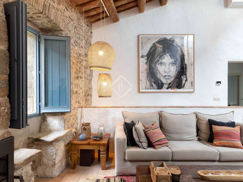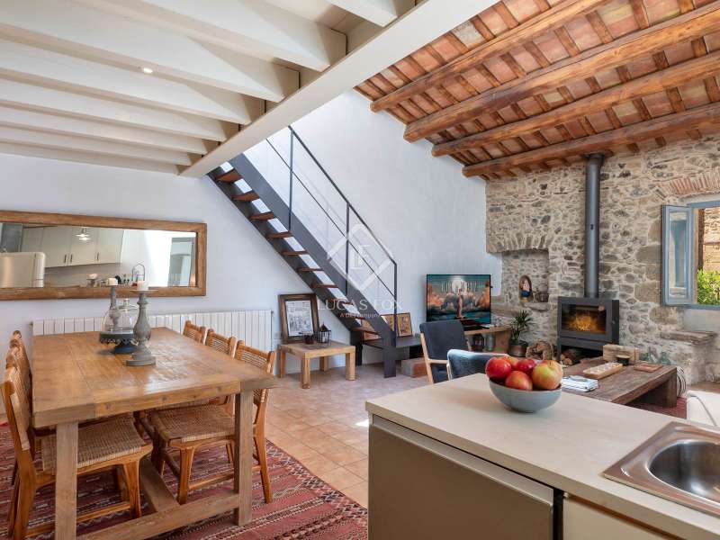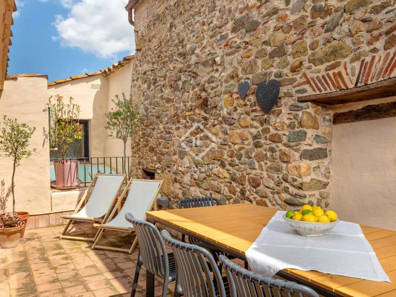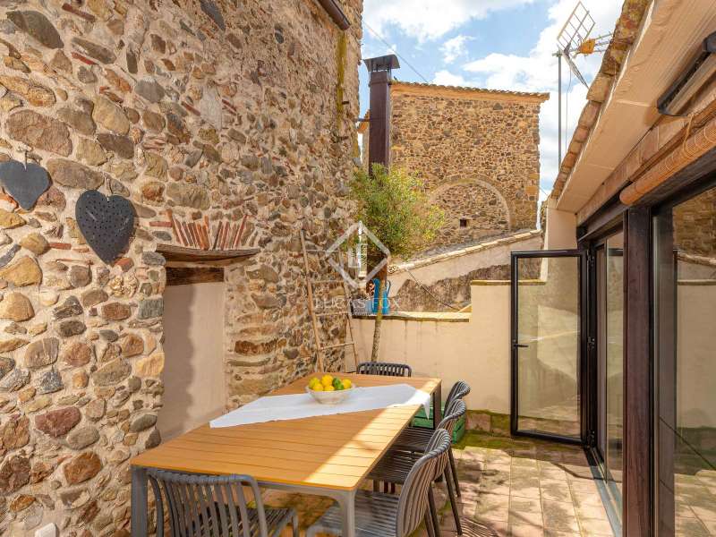 Lucas Fox presents this authentic, carefully restored stone house in picturesque and sought-after medieval village near la Bisbal, in the heart of Baix Empordà. The property is spread over two floors and has dual access from the street. Upon entering, we are welcomed by a spacious and elegant entrance hall that preserves original features. On this ground floor, there are two cozy double bedrooms: one with vaulted stone ceilings and the other with exposed wooden beams. Both rooms receive light from a vertical courtyard . They share a full bathroom and have direct access from the entrance hall, which offers great versatility as an additional space or work area. On the main floor , we find a beautiful open kitchen that blends seamlessly into the warm and bright air-conditioned living-dining room with a traditional fireplace , large windows, and direct access to a pleasant terrace where you can enjoy the peaceful, sunny surroundings. This floor also houses the main bedroom with private bathroom. The renovation has respected the house's historic character, preserving fine materials and architectural details typical of the area without sacrificing contemporary comforts. Furthermore, the decor has been carefully curated down to the smallest detail, with a selection of pieces and finishes in keeping with the owners' fine aesthetic taste. Thanks to its compact size, practical layout , and easy maintenance, this property is ideal as a primary residence for those seeking quality of life in an authentic setting, as well as a second home for year-round enjoyment or short breaks. It could even be rented seasonally, given the high demand in the area. Contact us for more information.