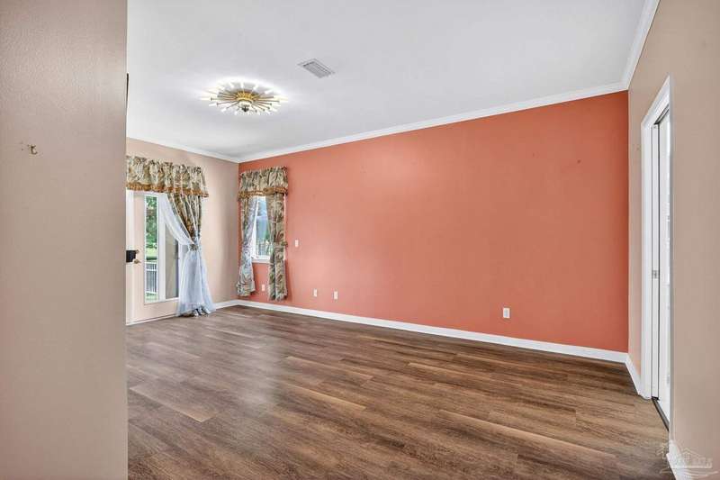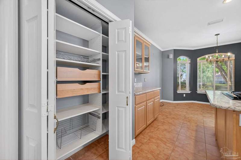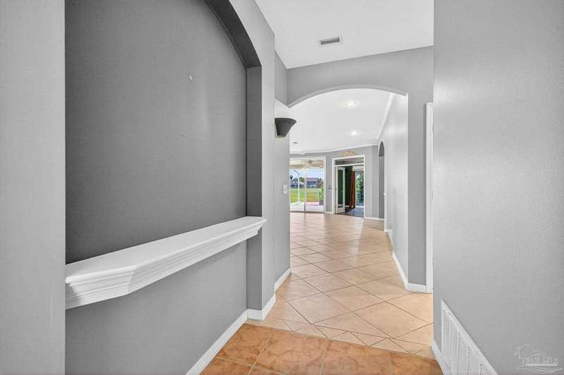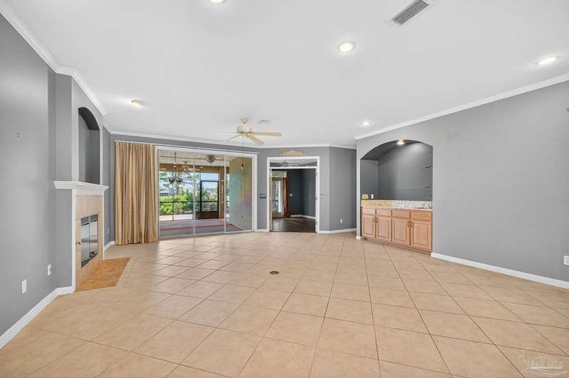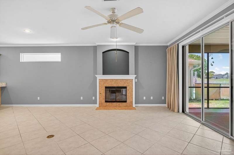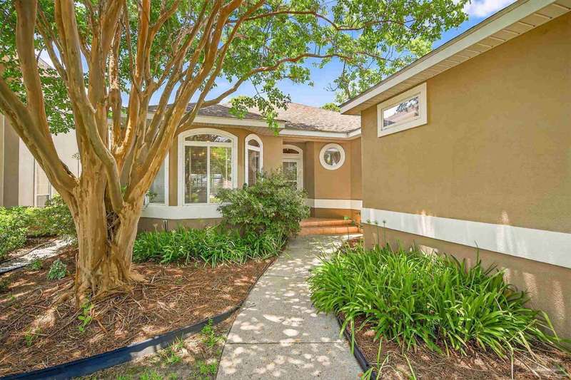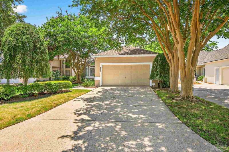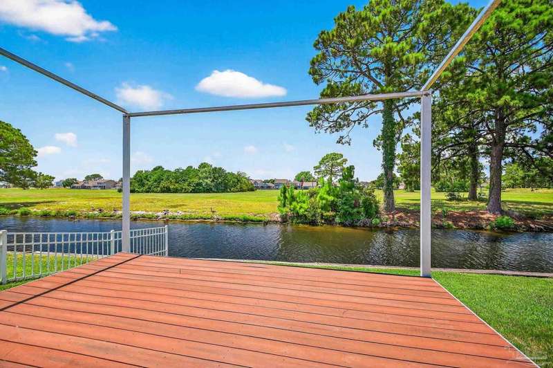 Charming Golf Course Community Home with Canal Views in Tiger Point! Welcome to this beautifully maintained 2-bedroom, 2-bath single-family home located in the quiet, desirable Willowood community of Tiger Point. Nestled in a serene golf course neighborhood, this 1,919 sq ft home offers a perfect blend of comfort, functionality, and Florida charm. The kitchen features granite countertops, a Jenn-Air gas cooktop in the island, newer appliances, a cozy breakfast nook, spacious pantry, and a built-in desk-ideal for meal prep or a work-from-home setup. Tile and luxury vinyl plank flooring flow throughout the home-no carpet to worry about! The spacious living room boasts a gas fireplace and a wet bar, perfect for entertaining. Sliding glass doors open fully to reveal a screened-in patio and deck with peaceful canal views-your own private retreat. The large primary suite includes a walk-in closet, double sink vanities, a garden tub, and a separate shower. In addition, to the bedrooms there is another room just off the living room with access to backyard that could be an office, library, multimedia room, home gym or whatever your heart desires! Additional highlights include a generous laundry room and a whole-home natural gas generator for year-round peace of mind. Enjoy easy living as the association takes care of all lawn mowing, edging & blowing. This home combines comfort and convenience in one of Gulf Breeze's most sought-after communities. Whether you're downsizing, retiring, or just looking to enjoy golf course living with water views, this home is a must-see!