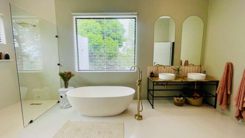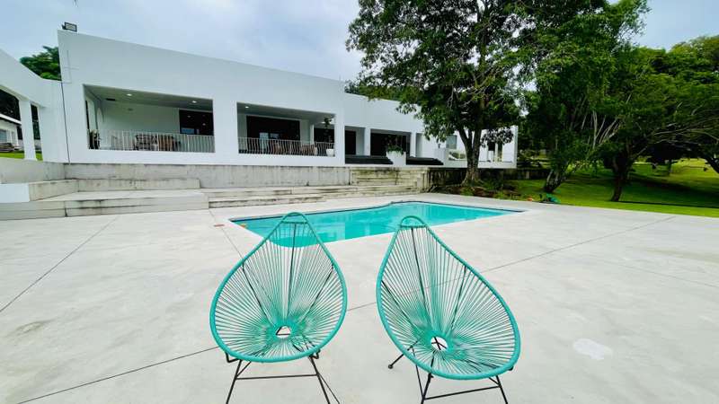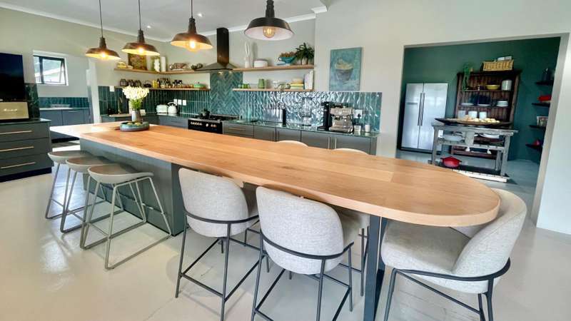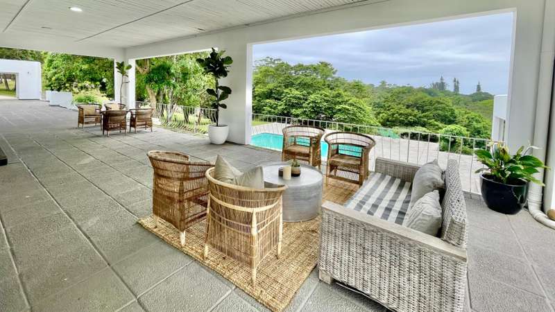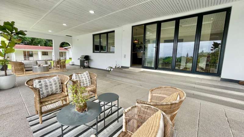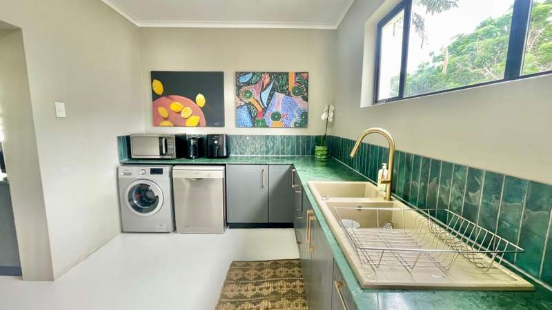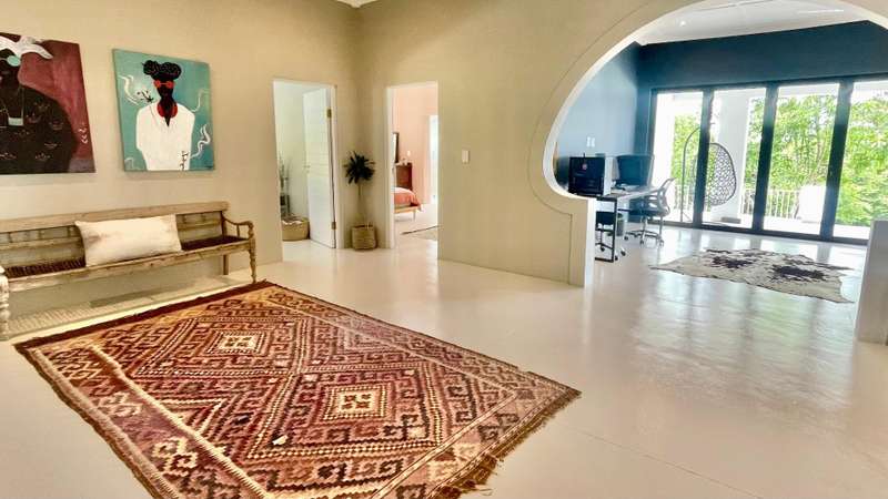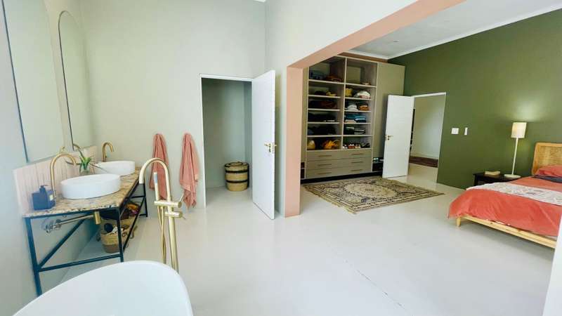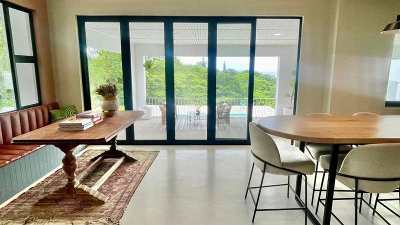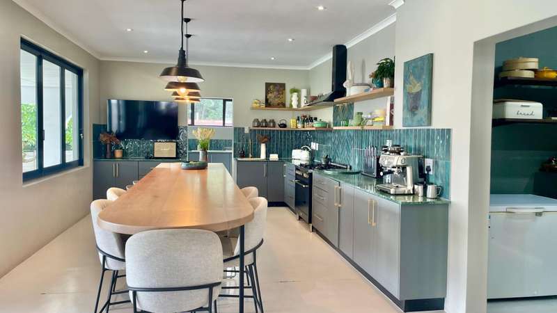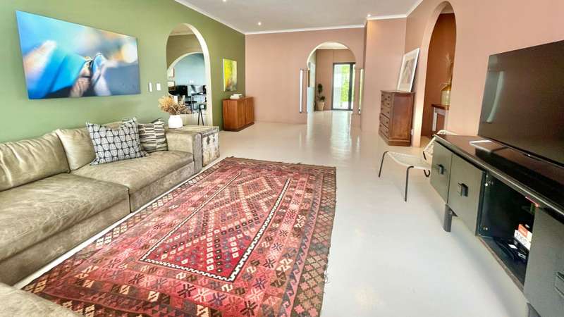 Luxurious and Modern Spanish-Moroccan Inspired Coastal Retreat This 1000m?? architect-designed villa in Umtentweni combines a striking modern Spanish exterior in bold, stark white with warm Moroccan-inspired interior. Set on nearly 8000m?? of landscaped gardens, the house offers breathtaking views of the Port Shepstone Golf Club, Umzimkulu River, and Indian Ocean. The main residence features 5 ensuite bedrooms, spacious entertainment areas, a 10-seater dining room, and a gourmet kitchen with a 5m oak and marble island as well as a designer pantry. The high ceilings, arches, the large open spaces and screeded floors throughout, creating spaces of calm and balance. Large stacking doors create a seamless flow to the outdoor entertainment area with a covered patio almost the length of the entire house, extending to the sparkling pool below that boasts an adjacent covered pavilion with a pizza oven, dining area and lounge plus a changing room and bathroom. Outbuildings include a 1-bedroom studio, a 2-bedroom flatlet, domestic quarters, and 3 garages. With the two 5000L JoJo tanks, solar power, and electric fencing, this property is secure, luxurious and self-sufficient. Ideally suited as an expansive family villa or a boutique hotel, its combination of modern architecture, warm interiors and idyllic location in the coastal village of Umtentweni, offer unmatched potential and a haven for those who value space and tranquility. Make sure to watch our video tour.