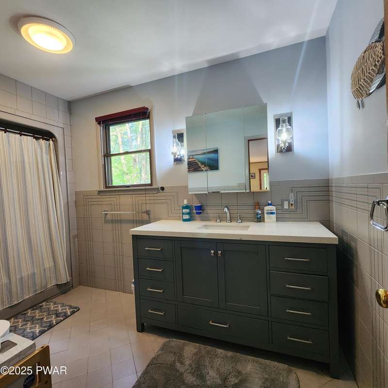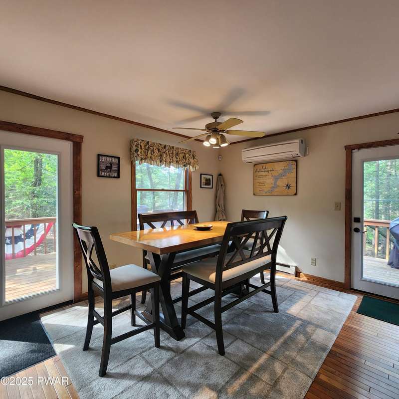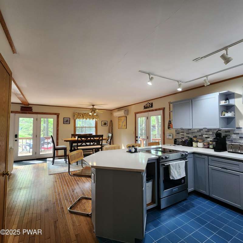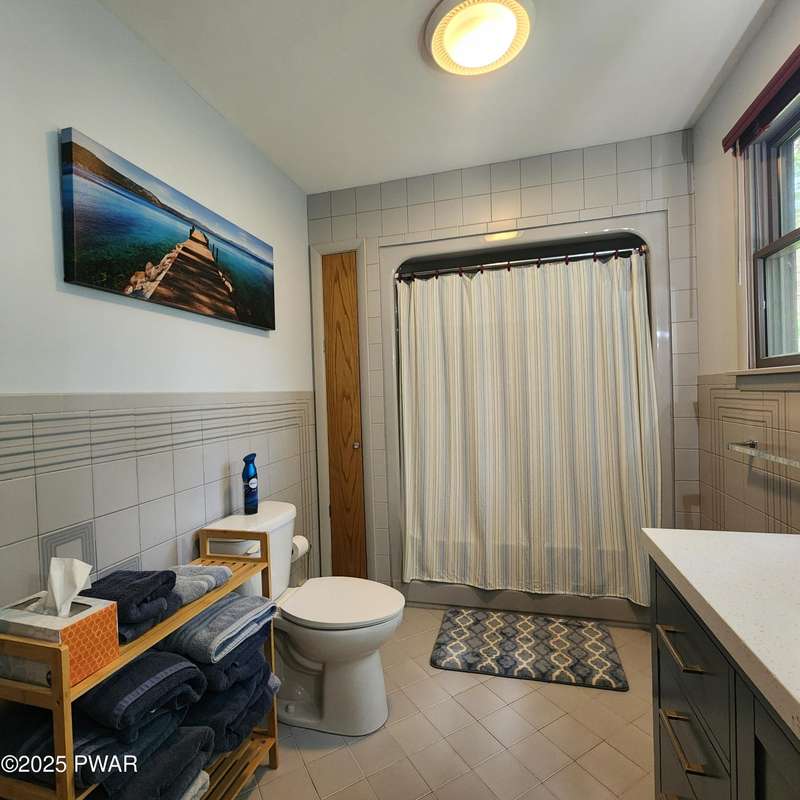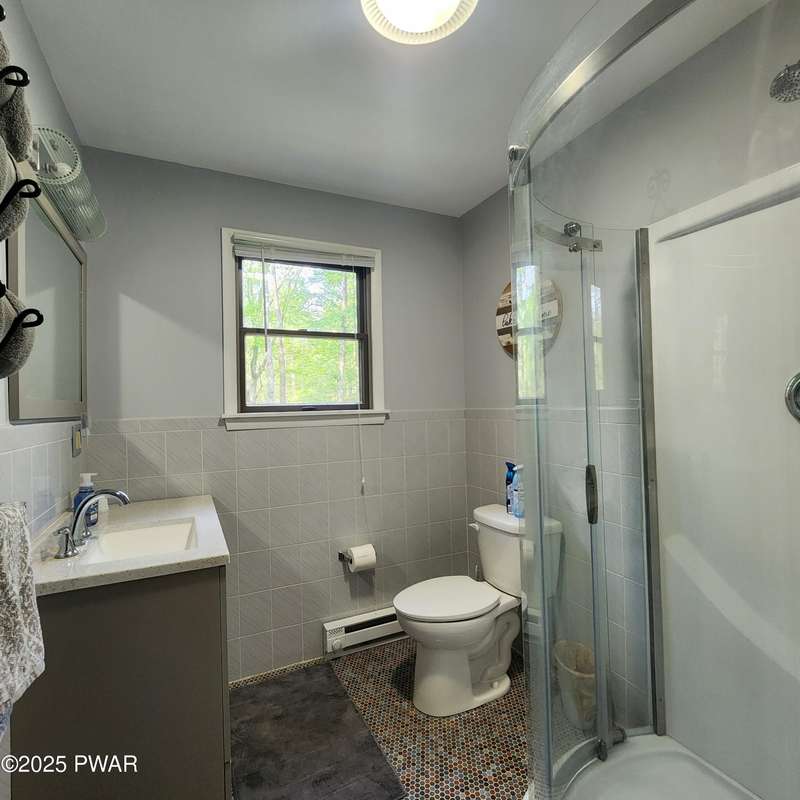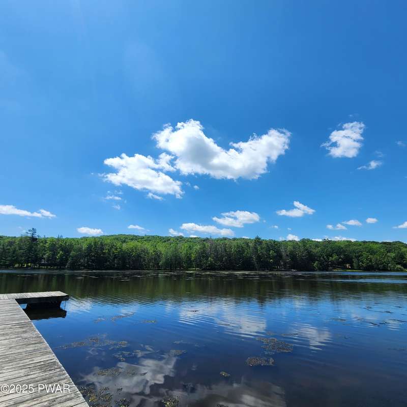 Turn-key gem in the desirable Tanglwood Lakes community with access to stunning Lake Wallenpaupack! This beautifully maintained home features 3 spacious bedrooms, 2 fully updated bathrooms, and a completely remodeled kitchen with modern finishes. Enjoy the warmth of natural hardwood floors throughout and cozy up by the wood-burning fireplace on chilly nights. The expansive wrap-around deck is perfect for entertaining or relaxing in the peaceful surroundings. Additional features include a 1-car garage and a full basement offering ample storage or potential for additional living space. Don't miss this move-in-ready home in one of the area's most sought-after communities!
