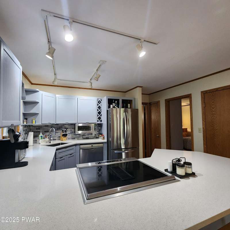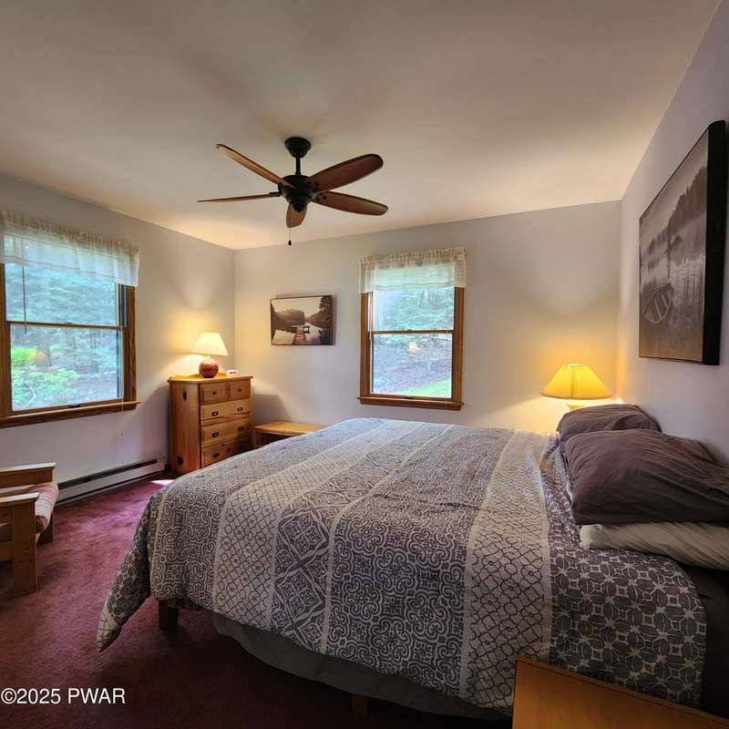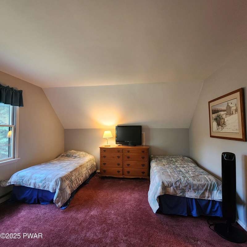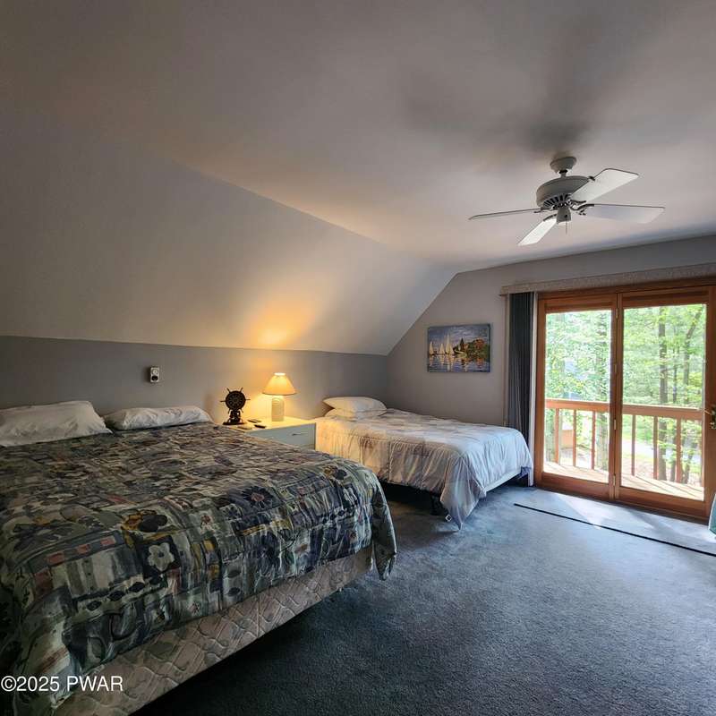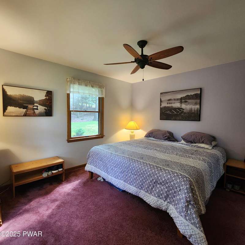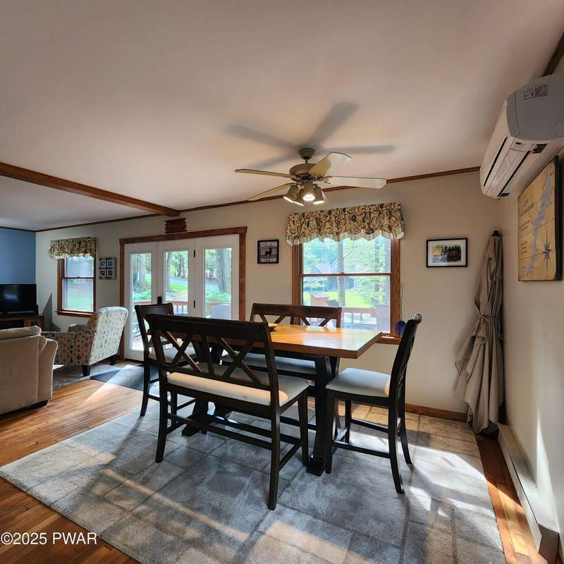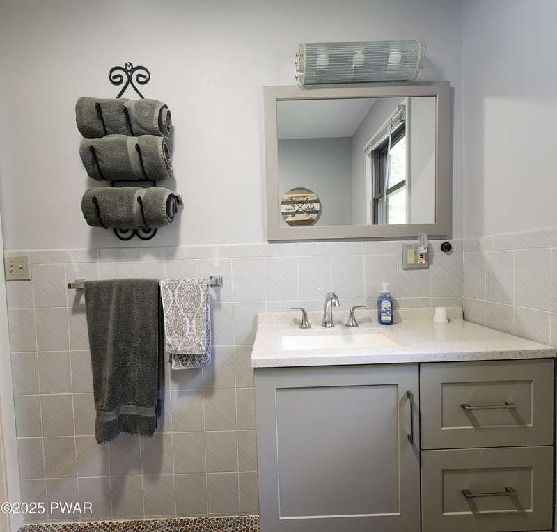 Turn-key gem in the desirable Tanglwood Lakes community with access to stunning Lake Wallenpaupack! This beautifully maintained home features 3 spacious bedrooms, 2 fully updated bathrooms, and a completely remodeled kitchen with modern finishes. Enjoy the warmth of natural hardwood floors throughout and cozy up by the wood-burning fireplace on chilly nights. The expansive wrap-around deck is perfect for entertaining or relaxing in the peaceful surroundings. Additional features include a 1-car garage and a full basement offering ample storage or potential for additional living space. Don't miss this move-in-ready home in one of the area's most sought-after communities!