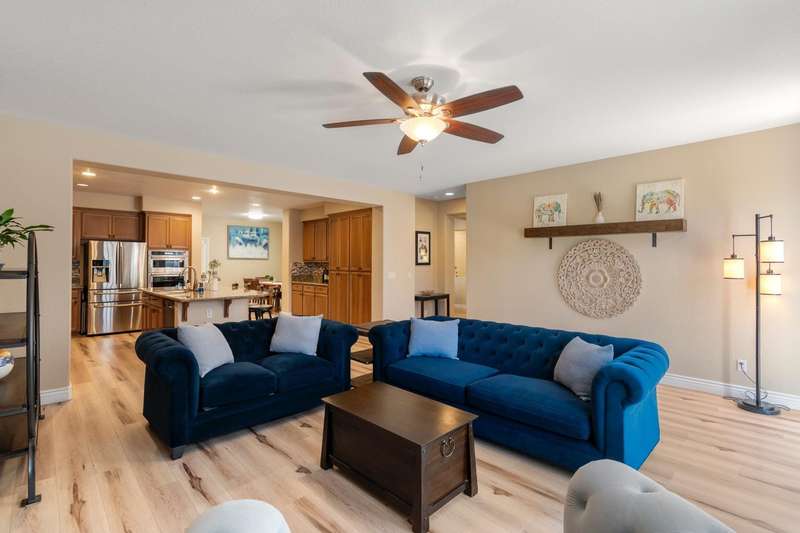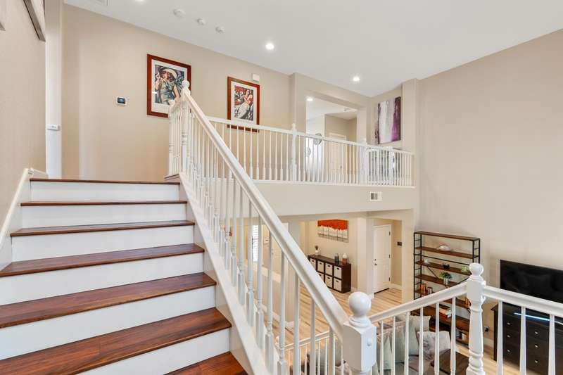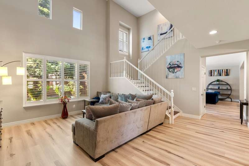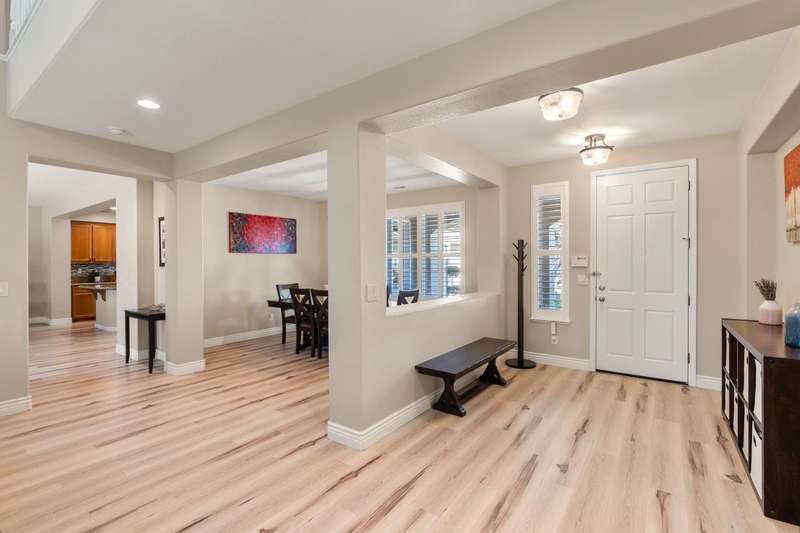 This exceptional 3,491 square foot home in Oakdale is perfectly designed for modern luxury and family functionality, featuring five bedrooms and three baths, including a rare downstairs bedroom with a full bath and an upstairs primary suite. The interior creates an immediate sense of space with an open floor plan and high ceilings, all refreshed by a full repaint, new fixtures, and a foundation of deluxe vinyl and engineered hardwood flooring throughout. The kitchen is a true culinary centerpiece, boasting a large island, stone countertops, and a suite of brand-new premium appliances (including a new wall oven/microwave and stovetop). Peace of mind is guaranteed by major upgrades, including a new HVAC system (with a transferable warranty) and refreshed bathrooms, while the third car (single bay)garage is used as the ultimate gym setup. The secure, beautifully manicured exterior features a fresh paint job and a professionally landscaped backyard oasis, complete with a new fence, a spacious patio, an outdoor dining area, and a large outdoor gazebo, all enhanced by a professionally installed alarm system and Ring cameras.