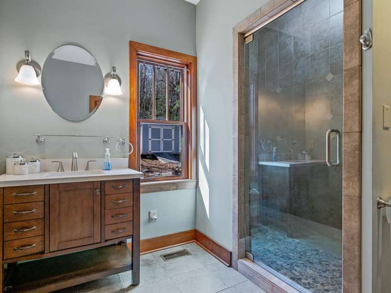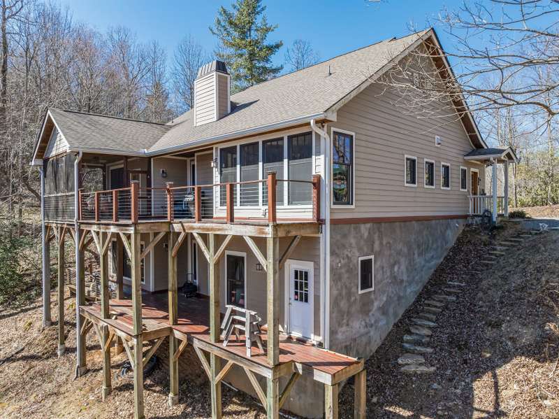Beautiful Three Acres Mountain retreat! This pristine 3-bedroom, 3 bath home features year-round comfort with views of the gorgeous mountains. Beautiful kitchen that opens to the main living space with a gas fireplace. Main level has two bedrooms with an additional bedroom on the lower level, each bedroom has its own bathroom and walk-in closet. A second family room and unfinished space is located on lower level. Decking off both levels along the back of the house including a covered, screened-in area on the upper deck. Features include: tankless water heater, energy-efficient windows, generator.