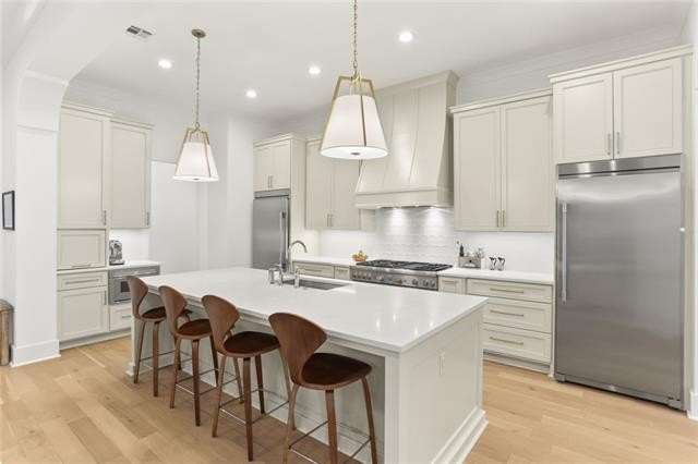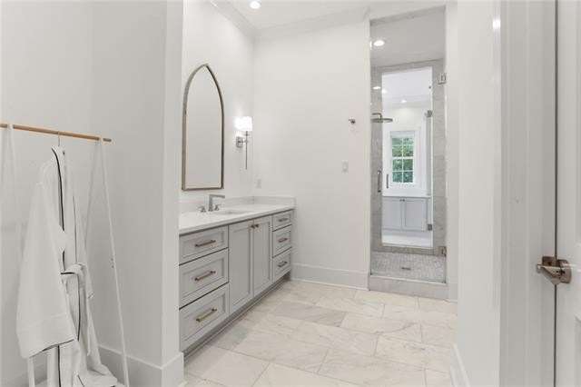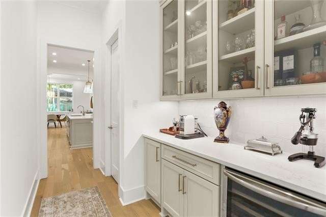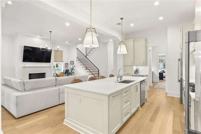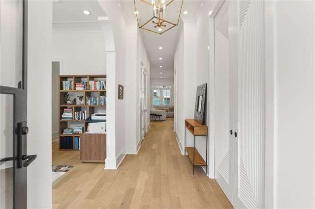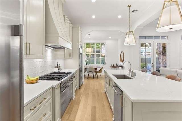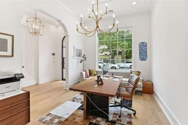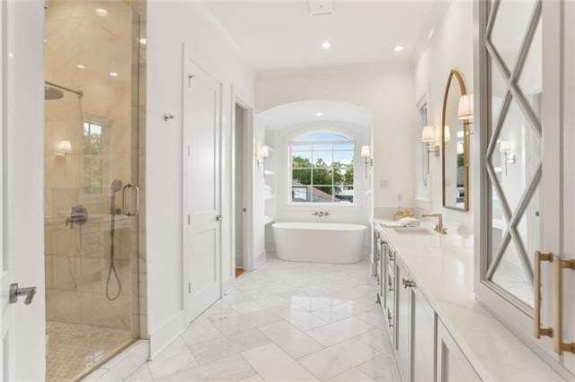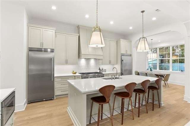 Meticulously crafted and elegantly appointed, this luxury residence is tucked away in the heart of Old Metairie’s Crestmont Park, just steps from the area’s boutiques and restaurants along Metairie Road. Built in 2022, this nearly 4,000 sq ft architectural showpiece blends timeless design with modern sophistication. Inside, you'll find soaring ceilings, custom cabinetry and millwork, and designer lighting throughout. The gourmet kitchen is a culinary dream, complete with Thermador appliances, quartzite countertops, a generous island, and an adjacent butler’s pantry. The open floorplan includes a spacious den with gas fireplace, formal dining room, and a guest suite on the main floor—ideal for hosting or multi-generational living. The primary suite is a true sanctuary, with serene views of the backyard and an indulgent bath featuring dual private dressing areas, separate vanities, custom walk-in closets, individual water closets, and a spa-caliber shared shower. Outside, a covered outdoor kitchen opens to a lush, fully turfed backyard, creating a seamless indoor-outdoor experience perfect for entertaining or al fresco dining.