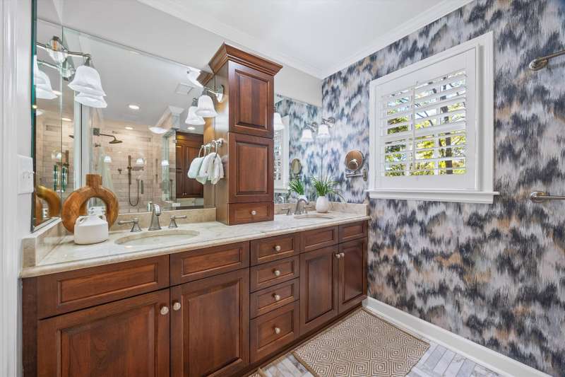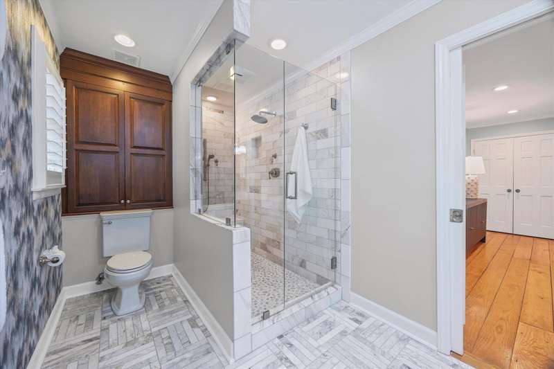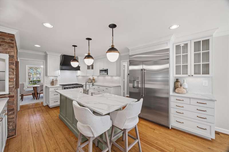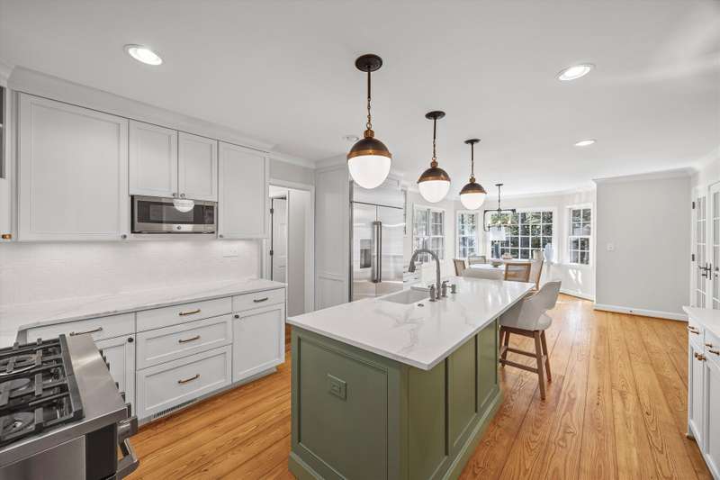 Multiple Offers Received - Please submit Best/Final Offers by 9:00AM Saturday, Nov 8th. Welcome to 5601 McAlpine Farm Road, a gorgeous 5 bed / 3 bath home in desirable Montibello on sprawling corner lot! This beautiful home offers an excellent floor plan with thoughtfully designed living spaces & functional flow for everyday living & entertaining.?Heart of pine wood flooring. Formal living and dining rooms. Kitchen remodeled in 2022 by Ashley Delapp Interior Design with quartz countertops, tile backsplash, under cabinet lighting, Cafe gas range, dishwasher, built-in refrigerator?& light filled breakfast room. Bar overhang with room for bar stool seating open to beautiful family room with brick surround fireplace and charming Dutch door to covered side porch entry. French doors lead to spacious sunroom?with Eze Breeze windows and oak flooring.?Mud room with great?storage and built-ins with entry from attached two car garage.?Bedroom/office and full bathroom on the main level. Large scale addition in 2005 with detached third car garage by Architect : Miller Nicholson and Builder: Kelly McArdle. Spacious primary suite with stunning bathroom updates completed in 2021 with double vanity and large walk-in tile surround shower. Large bonus room with walk in attic space. Three secondary bedrooms. Hall bathroom with double vanity, tile surround shower/tub combo and linen closet.?Rear yard patio with outdoor grill station and gas fire pit added in 2020 with professional landscaping. Meticulously maintained and extensive updates include: roof replaced in 2024, new liners and caps installed at both chimneys in Nov 2024, HVAC replaced in 2020/2019, encapsulated crawl space, Jeld-Wen windows in 2005. See NC Seller Disclosure for more information on property. Rug in front upstairs bedroom to remain. Excellent location minutes to Southpark! Move in ready!