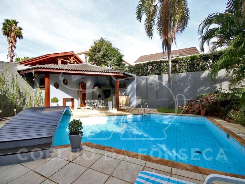 Pé direito alto, cinco suites, quintal amplo com boa area verde, gourmet com churrasqueira, forno para pizza, salão de festa, sauna umida