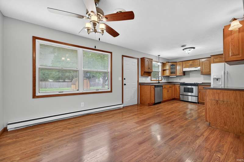 Move-in ready and full of charm, this 3–4 bedroom, 2 full bath home offers approximately 1,850 square feet of comfortable living space. The main level features a spacious living room with an open staircase, an applianced kitchen with dining area and access to the back deck, and a primary bedroom. A versatile den on the main floor could also serve as a 4th bedroom or home office. Updates include newer flooring in portions of the home, fresh paint, and updated fixtures. Upstairs, you’ll find two additional bedrooms and a full bath. Situated on a double lot, the property provides plenty of outdoor space along with an extra concrete slab for parking or recreation and a storage shed.