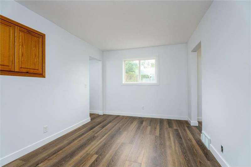Great value in Highland Park. All new paint, flooring, kitchen appliances, and roof. Ready to move in. Efficient layout provides 2 bedrooms. Lower level is clean and tidy with great storage, laundry, walk-out, and half bath. Home lives much larger than square feet imply. Newer concrete parking pad and sturdy, large storage shed. Convenient, walkable location close to shopping, parks, airport, and corner bus stop.