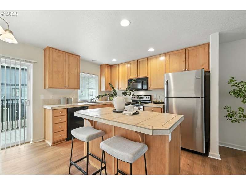 Move-in before Christmas! Beautiful brand new Luxury Vinyl Plank flooring in living room and kitchen area. ALL appls included-stove,fridge,microwave and W/D. Convenient island w/eating bar, breakfast nook area, nice maple cabinetry plus sliders to the new deck. Primary EnSuite and 2nd bdrm on upper lvl. Additional 3rd bdrm or bonus/office and W/D on lower level with sliders to patio. Landscaped large fenced back yard with gate. Townhome has all NEW Roofing/Gutters/Hardi- Plank Siding/Paint/Trex decks and stairways plus new railings installed 2.5 yrs ago. Seller paying full townhome assessment at closing to keep your HOA dues low: $240/mo covering management, road maintenance & exterior. Price to sell!