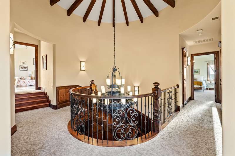 Surrounded by the natural beauty of Southern Oregon's Rogue Valley, this Mediterranean-inspired estate pairs timeless design with agricultural excellence. The 7,256± sq. ft. residence centers around a private courtyard and showcases cathedral ceilings, a grand entry, and a chef's kitchen opening to a grand great room and multiple outdoor living areas. The primary suite offers vineyard views, spa-style bath, and expansive deck, while amenities include an executive office, library, wine room, gym, sauna, and indoor saltwater pool. A matching 851± sq. ft. casita provides a luxurious one-bedroom guest retreat overlooking the vines. The 160-acre property features Celtic Moon Vineyards—42.5± acres of premium vines with 77.44 acres of irrigation rights. Located minutes from Eagle Point and Medford, this private estate captures the essence of Southern Oregon's wine country lifestyle.
