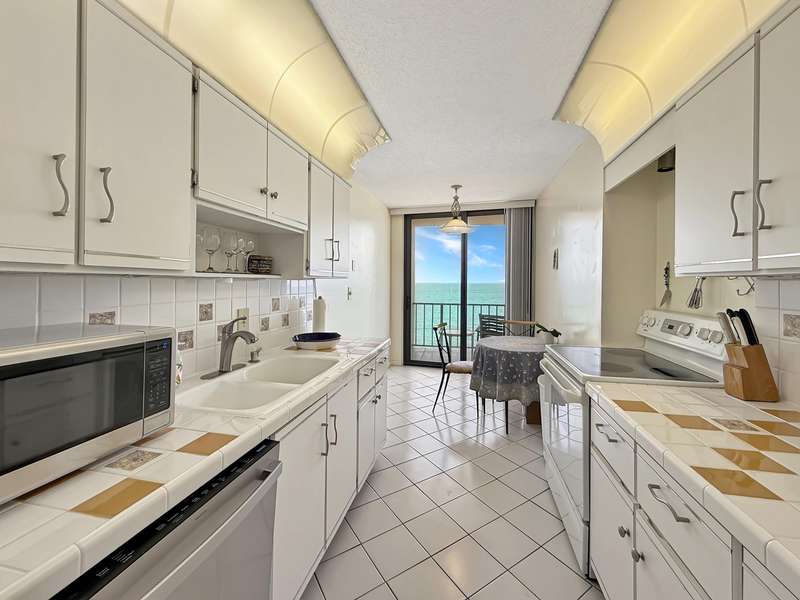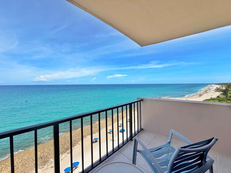 Enjoy not one, but two balconies! This corner unit features the preferred southern exposure, which maximizes the winter sun. Small nook off the kitchen leads to the additional east balcony & overlooks the unobstructed view of the turquoise Atlantic - perfect location for morning coffee or cocktails. Split bedroom floor plan and additional day bed for guests. Laundry room w/ washer dryer inside unit. Impact sliders throughout. Covered parking space. Cote D'Azur has fob access to front gate & each tower. On-site manager M-F. Pool and a large outdoor social area are between the two towers. Nicely equipped fitness center, community room, library & tennis and pickleball courts. Cote d'Azur is 15 minutes to world class shopping, dining and 20 minutes to Palm Beach International Airport.