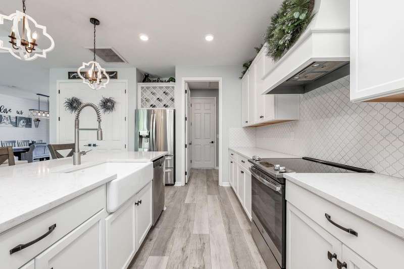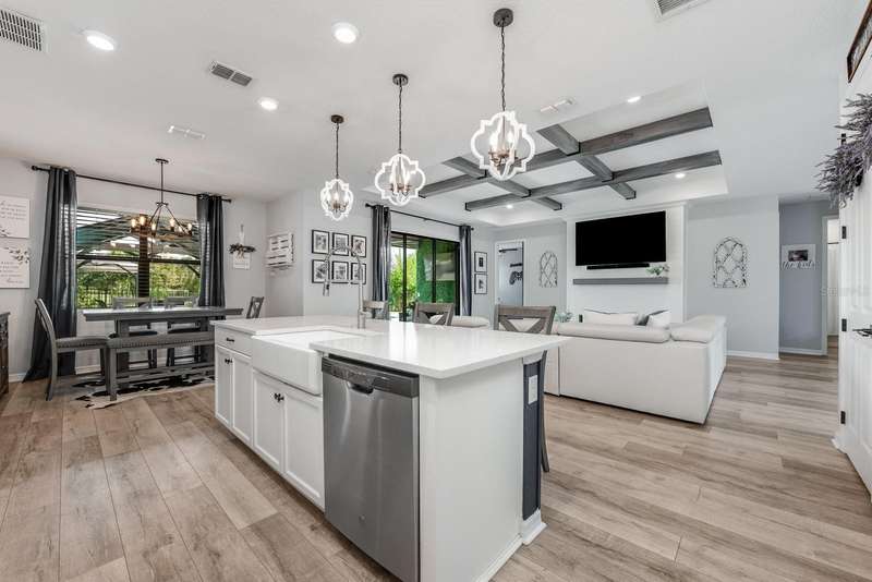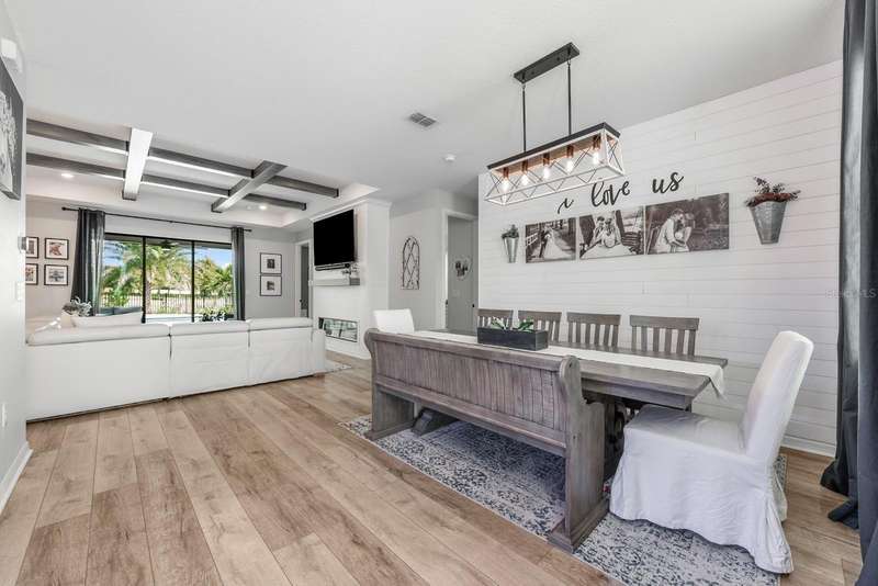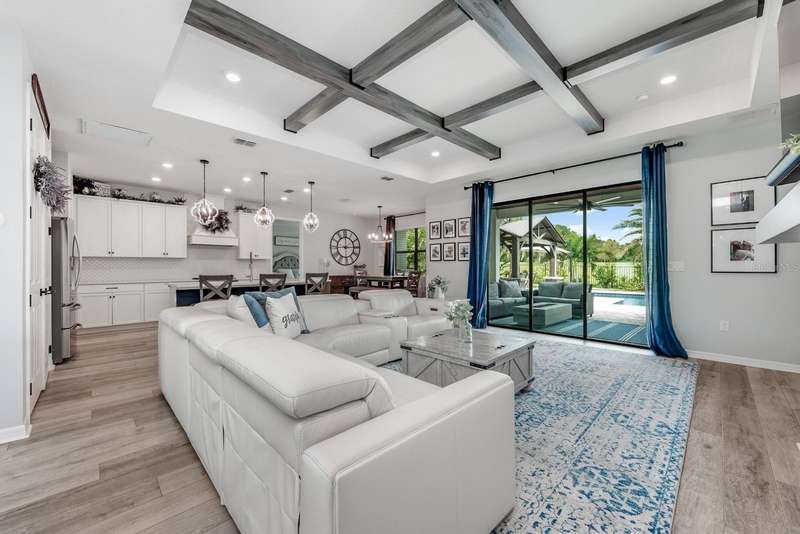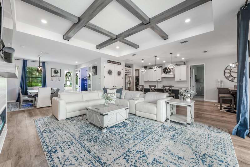 Under contract-accepting backup offers. Ask about a lender provided rate buy-down credit on this home! ***Welcome to Sugar Hill Estates in Grand Island Florida where this beautifully updated 2019 ~ CUSTOM BUILT ~ POOL HOME delivers endless comfort, fresh style, and everyday convenience! Perfectly situated on a CUL-DE-SAC street, in a small community with a LOW HOA this thoughtfully designed home offers a SPLIT BEDROOM FLOOR PLAN and an OPEN CONCEPT DESIGN filled with endless natural light. The interior delivers a quiet luxury that starts with the vinyl plank wood flooring throughout the main living areas, CUSTOM BEAMS accenting the ceiling, and a striking ELECTRIC FIREPLACE that serves as the focal point of the living room. The chef’s kitchen is a showstopper with 48” soft close cabinetry, QUARTZ COUNTERTOPS, a shiplap accent on the ISLAND, oversized FARMHOUSE SINK, must have STAINLESS STEEL APPLIANCES, and a WALK-IN PANTRY. The formal dining space is elevated with its own shiplap accent wall, perfect for hosting family and friends. Your PRIMARY SUITE is a true retreat, featuring a WALK-IN CLOSET and spa inspired en-suite bath with a CUSTOM TILED SHOWER, upgraded faucets, and more of the quartz counters. Double pane windows with custom treatments, upgraded hardware throughout, and FRESH PAINT in the living areas, game room, and primary bath (2024) make this home feel fresh and MOVE-IN READY. Outside, the backyard is your private oasis with a NEWER POOL and paver deck (2021), tropical landscaping, vinyl and wrought iron fencing, and a permanent pergola (added in 2020) create the perfect setting for relaxation and entertaining – with no immediate rear neighbors, and Lake Yale as the backdrop. The curb appeal shines with upgraded front landscaping and curbing, welcoming you home! Practical upgrades add peace of mind, including the extended garage and a well designed layout that blends style with everyday function. Close to town, area schools, shopping, dining and local hospitals - this home checks all the boxes for location! Clean, immaculately maintained, and well loved - it is everything you could want inside and out. Call today to schedule a tour!
