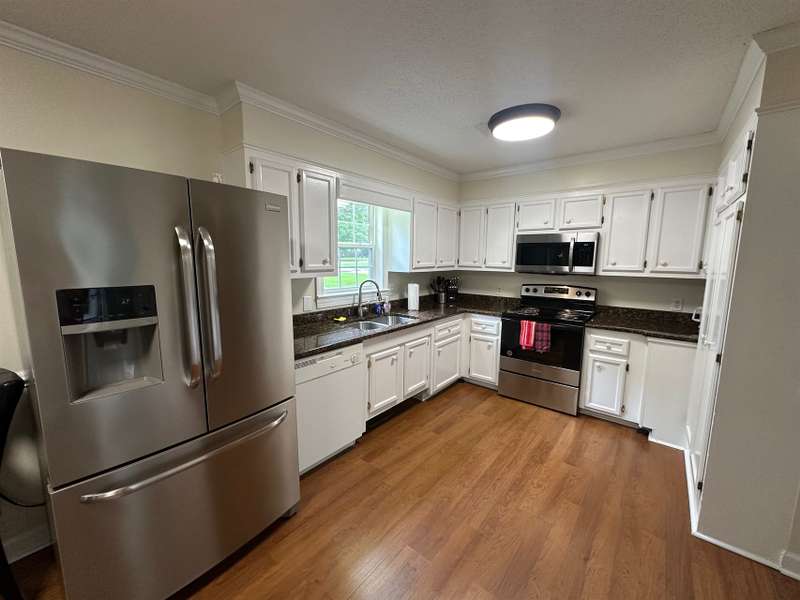 Welcome to this beautifully maintained 3-bedroom, 2-bath home offering comfort, space, and convenience situated on a generous 0.81-acre lot within the city limits! Inside, you'll find a formal dining room, a spacious kitchen with all major appliances and a pantry, LVP and tile flooring throughout, and a cozy fireplace in the living area. The spilt bedroom floor plan includes an updated primary bath featuring a fully tiled walk-in shower and a separate laundry room adding everyday convenience. Step outside to a covered back porch overlooking the expansive backyard, perfect for relaxing or entertaining. Conveniently located near ECU Health Medical Center and East Carolina University. Furnishings are negotiable. Don't miss out on this move-in-ready gem!