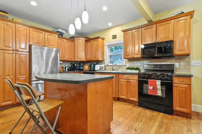 Welcome to this oversized 5-bedroom townhouse, where space and comfort meet everyday elegance. From the moment you enter, the soaring ceilings and gleaming hardwood floors of the great room create a warm, inviting atmosphere. The chef’s kitchen is a true centerpiece, featuring gas cooking, granite countertops, rich hardwood cabinetry, and a large island that flows seamlessly into the backyard view—perfect for lively gatherings or quiet evenings at home. Upstairs, three sun-filled bedrooms offer generous closets and a beautifully appointed bath, while the third floor provides two additional rooms, ideal for guest suites, home offices, or creative escapes. A full basement offers endless possibilities, from storage to future expansion. Outside, enjoy a private fenced yard, a welcoming patio for outdoor entertaining, and a paved driveway with space for four. Tucked in a prime location near universities, shopping, and transit, this home offers the perfect balance of style and convenience.