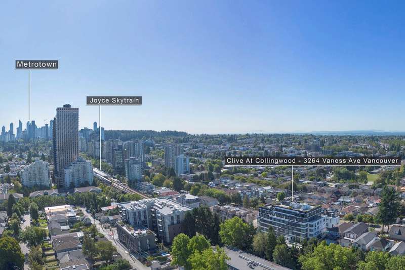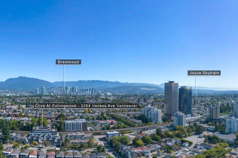 MOVE-IN READY | CLIVE at Collingwood offers the best value in East Vancouver’s Joyce-Collingwood neighbourhood. This south-facing 1-bedroom home is located on the quiet side of the building, offering peaceful living just steps to SkyTrain. One of the final opportunities to own at Clive, this concrete home can be secured with only a 5% deposit, with pricing that may qualify for PTT & GST exemptions. Superior finishes include air conditioning, gas range, smart home technology you can control from your phone, and the world’s most powerful air-filtration system for year-round comfort. Functional layouts maximize space, with storage lockers available for added convenience. Don’t wait—secure your home at Clive today.