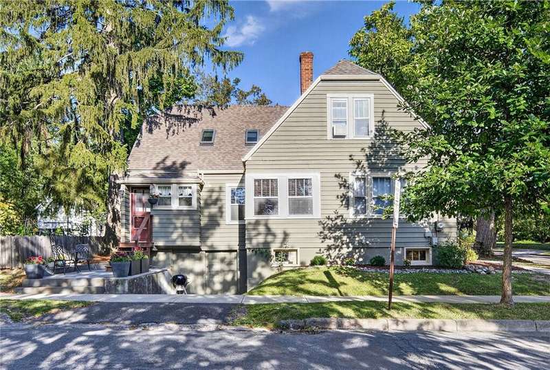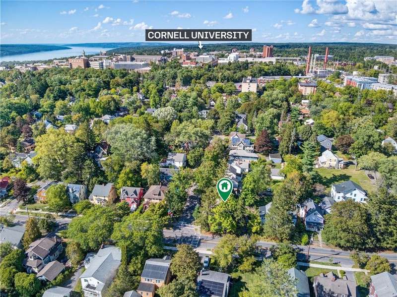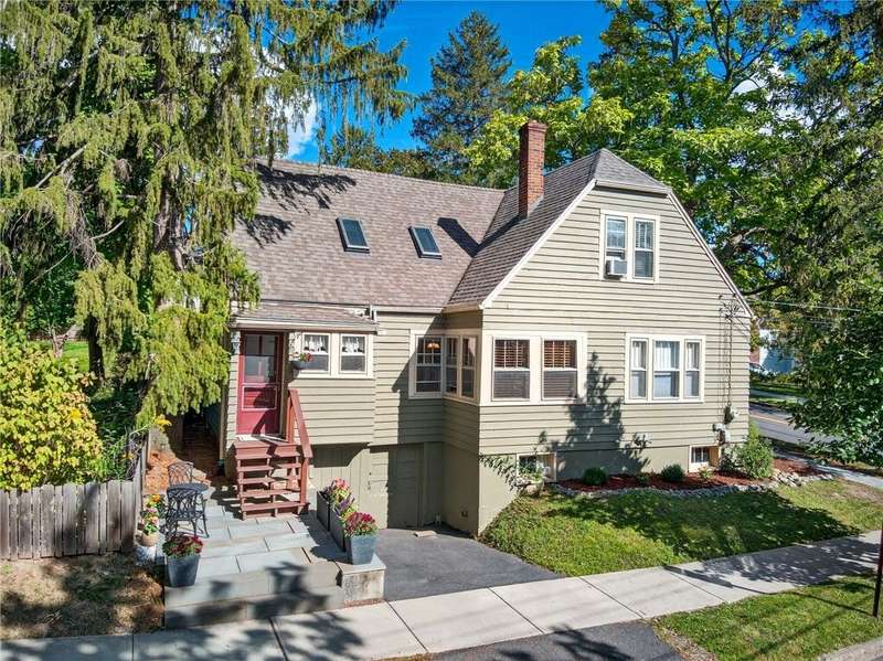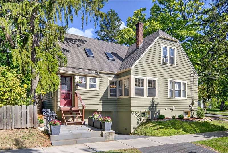 Move in ready and SO CUTE! This 4 bedroom, 2 full bath Cape Cod Craftsman home is just one block to Belle Sherman elementary, and five minute walk to Cornell University. Wonderful opportunity for urban, multigenerational living, the two bedrooms, 1 full bath on each floor offer ideal flexible living space. New slate stoop, enter the home through a beautiful archway classic to the 1930s. Main floor oozes with charm with hardwood floors throughout, natural woodwork in the living and dining rooms, and a cozy 3-season porch. Upstairs ceilings were raised and beams added, skylights replaced, and new carpet make a bright spacious family room and generous bedrooms, all with new electric panel heat. New roof in 2020, new H2O heater with power vent; new HE furnace and a/c in 2019 with NEST thermostat. Older kitchen with new appliances under-stairs pantry and a good workshop-ready basement. Small yard means minimal maintenance; new fence to east creates privacy. Washer/dryer on main floor. Conveniently located next to East Hill Rec Trail and the East Hill shopping center, and only 1 mile to heart of downtown Ithaca.