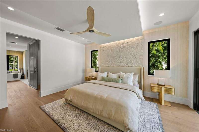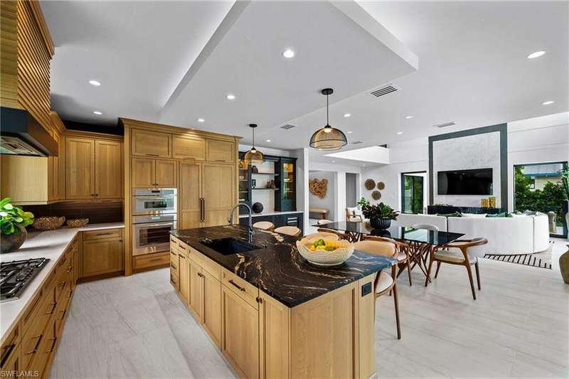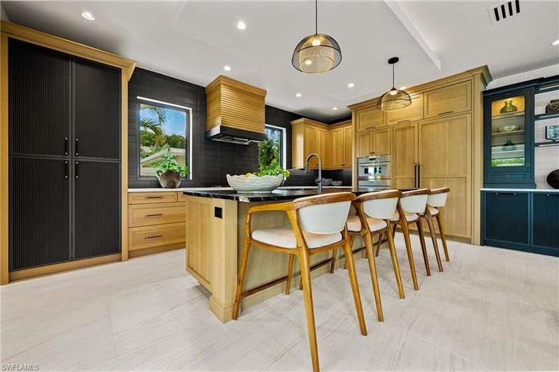 Renowned award winning custom home builder Sea Castle Development partnered with architect Ashmore Design to bring together a distinct offering in Lake Park unlike any other. Effortlessly blending elegance with livability, this extraordinary residence offers refined comfort across 3,766 square feet of sun-filled living space. This nature inspired home features an open-concept floor plan, soaring ceilings, and curated designer finishes throughout every inch. The chef's kitchen is outfitted with a top-tier Thermador appliance package, while the summer kitchen boasts premium XO appliances-ideal for seamless indoor-outdoor entertaining. With natural elements present throughout the home, the backyard oasis lures you with its charm. Featuring multiple entertaining areas, one being shaded by a motorized pergola & the other fitted with electric screens & shutters - there is more than enough space for any type of gathering. The first-floor primary suite delivers comfort and convenience, while upstairs, a bedroom and two additional en-suites surround the spacious loft and a private balcony. Additional highlights include an elevator, hurricane impact windows and doors, engineered white oak Real Wood flooring, stunning designer tile work, sonos sound system throughout, propane heated saltwater pool / spa, & 24kw generator with automatic transfer switch. Offered fully furnished, this exceptional home is move-in ready and ideally located just minutes from Naples' white-sand beaches, shopping and world class dining. Ready for immediate occupancy.