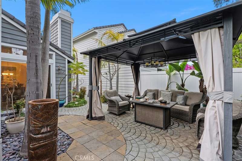 Beacon Hill Highlands home with a large main floor primary bedroom. This 3 bedroom, 2.5 bath home is situated on a cul de sac with a gated entrance. The open floor plan has high ceilings and lots of light. The kitchen has granite countertops, an eat in kitchen and breakfast bar, & stainless steal appliances. There is a formal dining adjacent to the living room with brick fireplace and views to the outside. The spacious primary suite also has views of the beautiful, serene, private yard and free standing jacuzzi. The primary bedroom downstairs also has a fireplace and a bathroom with a bathtub, separate shower, dual vanities, private toilet and views of a private courtyard. Downstairs there is also a powder bath plus separate family/TV room. Upstairs there are two more spacious bedrooms with a full bathroom and a spacious balcony with peek a boo ocean views. New heater and AC installed in 2023. 2 car garage with laundry and plenty of storage. Enjoy all Beacon Hill has to offer including 3 swimming pools and spas and 6 lighted tennis courts. Close proximity to biking and hiking trails to Salt Creek Beach. Beacon Hill is also close to excellent restaurants, shopping, grocery stores, Dana Point Harbor currently undergoing a major renovation, & five star resorts and beaches.