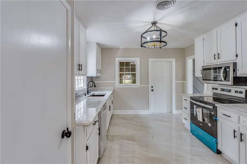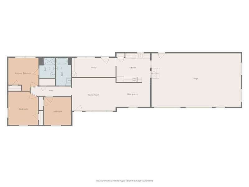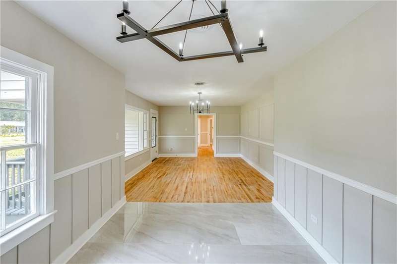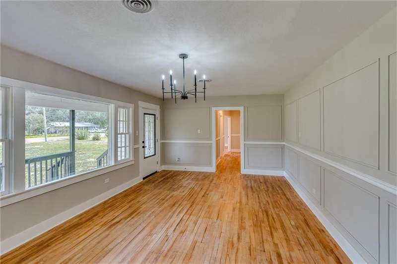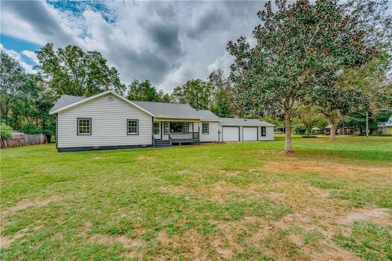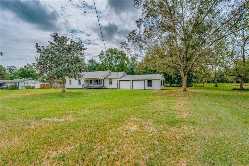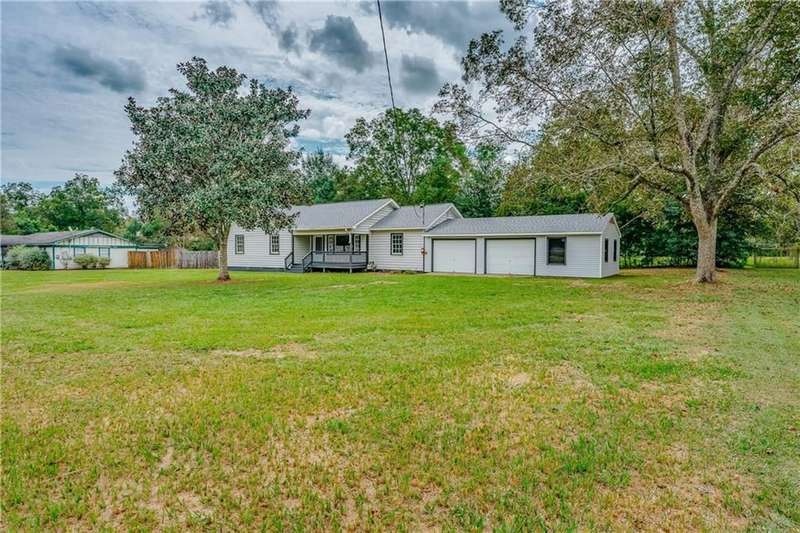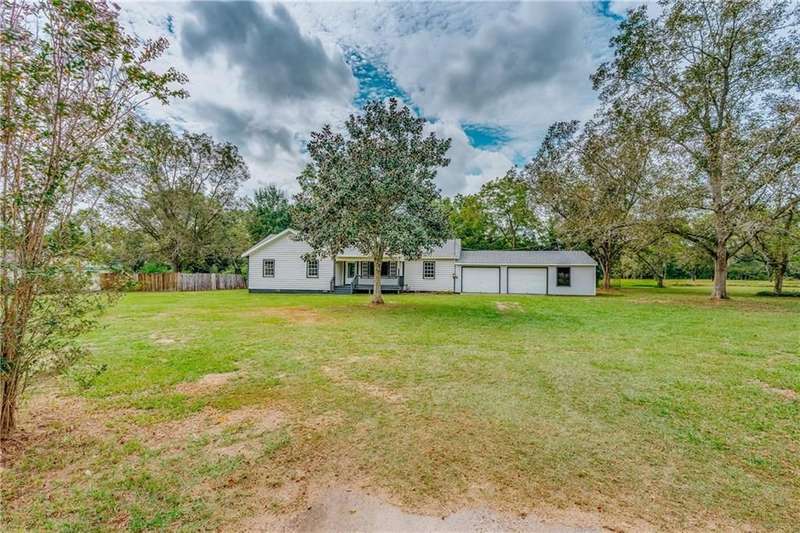 Looking for a picture perfect home with a little privacy? Don't miss out on this beautifully updated home that sits on a flat, half acre lot! A brand new architectural roof was just installed in 2025, giving you peace of mind for years to come! Inside, you will love the distressed real hardwood floors, oversized palazzo tile and fresh paint. The accent walls bring a pop of style and decor, making this home a true stand out! The kitchen is a show piece, with stone counters, white cabinets and updated stainless steel appliances. Both bathrooms have been updated with new fixtures, and the primary bathroom has a new walk in shower. One of the best features of this home is an oversized, attached two car garage. Perfect for someone looking for a hobby shop, storage or additional parking! Don't miss your chance to see this one! Call today! All measurements are approximate and not guaranteed, buyer to verify.