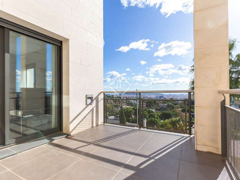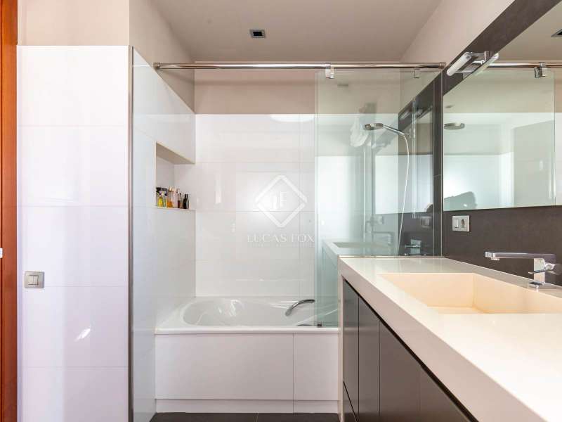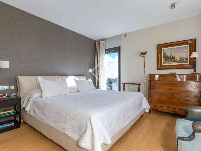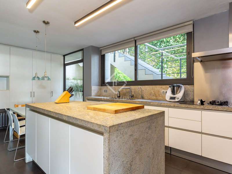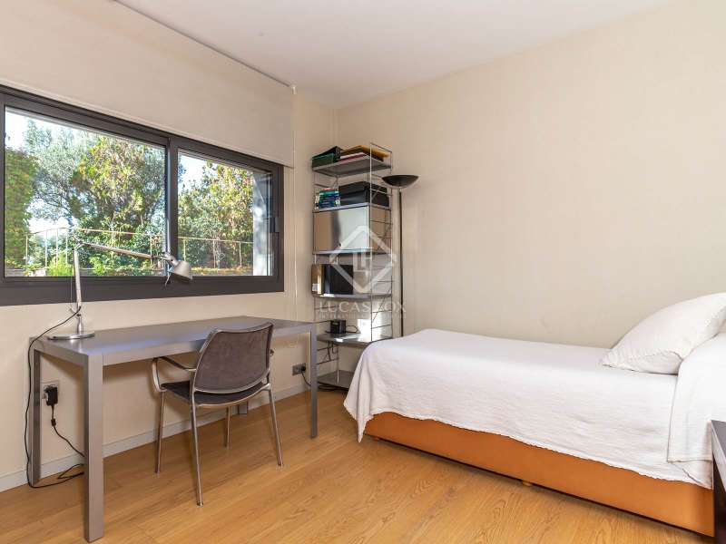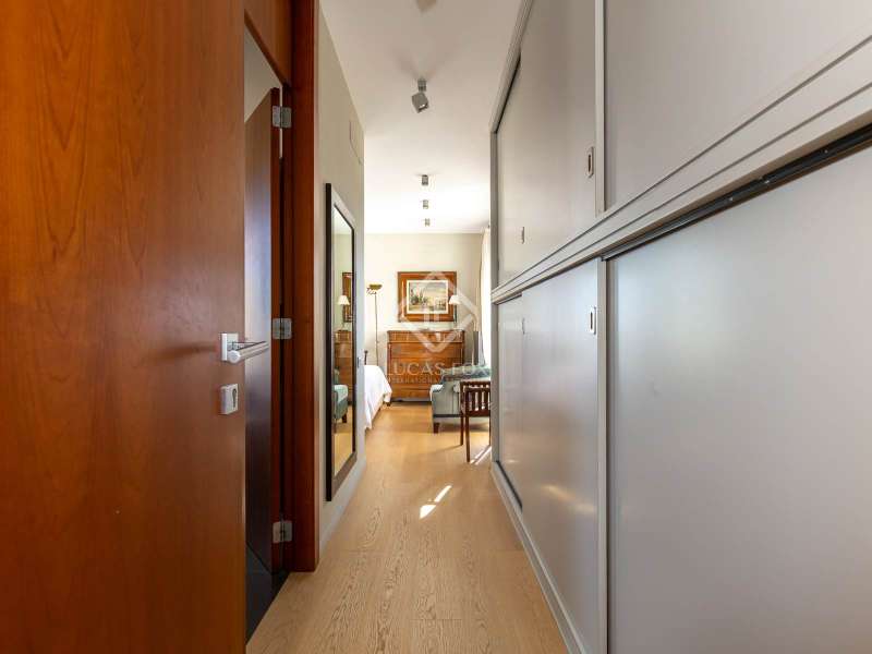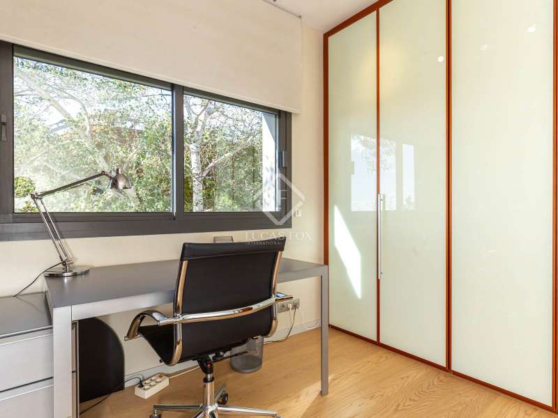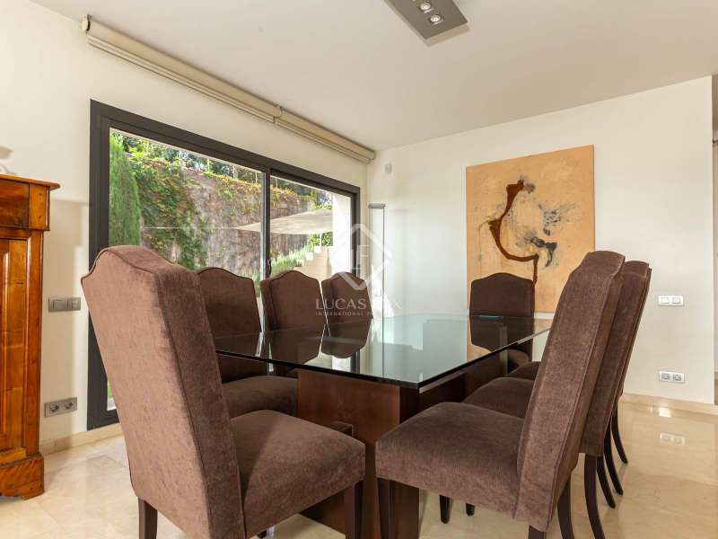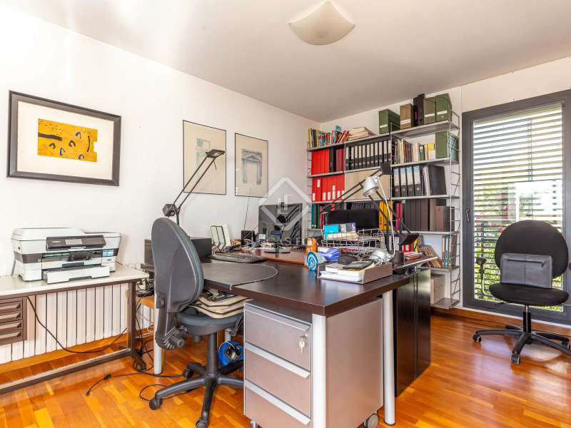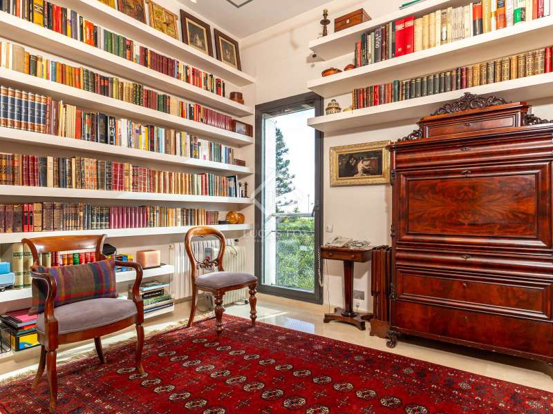 Modern and elegant house of approx. 451m2 built (cadastre) in 1991 on a plot of 801m2, with comprehensive renovation in 2007, including the façade. This exceptional house is made up of four floors with sea views linked by an lift and stairs, taking advantage of the different terraces of the garden plot. It has a very functional and modern design, as well as being very cozy and full of personality. The luminosity and tranquility of its rooms, all exterior, stands out. In addition, the house offers exclusive amenities such as a 653.65m² perimeter garden with a 42m2 pool, two porches ideal for a chill-out, 5 bedrooms, four bathrooms and a guest toilet. It has a garage with capacity for two cars and motorcycles, as well as exterior space for another two. The house is accessed through the garden at street level. The house is distributed over four floors with a clear separation between day area . On the ground floor, entrance hall with staircase to the spacious living room with two rooms with fireplace and double-height space, large balconies open the space to the porch area and exterior terrace of 19.62m2 with fantastic views of the sea, next to the fireplace area. the adjacent study library room. The formal dining room with access to the side garden is located four steps above the level of the living room, which allows the uses of the space to be differentiated from the day area without visually dividing them and keeping it open-plan. Two entrances connect the dining room with the kitchen, next to one of them the lift. The kitchen with a central island and office area is equipped with high-end appliances such as Miele or Neff, it has a gas and induction stove, oven, microwave, cocivap and American refrigerator. The kitchen has access to both sides of the plot , in one of them is the exterior access staircase and the room with the softener, in the other a large storage room wardrobe and another for cleaning, as well as the terrace with a dining table. garden level dining room and sea views. Here there is a access from the street directly to the garden . A guest toilet completes this floor . The first floor , at street level, has a central hall with views of the double living room space, which gives access to two double bedrooms with built-in wardrobes and sea views, which share a full bathroom with shower, an en-suite bedroom with built-in wardrobes, access to a 9.54m2 terrace with sea views and a full bathroom with bathtub and bidet. And to the garage for two cars and motorcycles with an exterior area for another two. The second floor has a large room used as a gym in its circular façade area and as an study in the area where the bedroom suite was located with access to a 61.85m2 perimeter terrace with sea views. The built-in wardrobe and the bathroom with shower. The semi-basement floor has a hallway with closets and the lift, a full bathroom with shower, a double bedroom with a built-in wardrobe and wine cellar- storage room under the stairs and access to the porch with sea views. The floor is completed by a living room with a games area and access to the 36.96m2 porch. In the porch area there is the laundry room and the lift machine room. From the porch and garden a staircase goes down to the large garden with the pool surrounded by wood and natural limestone. The house has heating by radiators and a condensing boiler with accumulator with a thermostat on the 1st floor . Aluminum windows with double glazed glass. Gradhemetic motorized blinds with adjustable slats on floor 1 and 2. Motorized screens on the ground floor. Ducted air conditioning on the 1st floor bedroom area and through Split in the suite. Security system with alarm. Descaler and osmosis in the kitchen. Automatic watering. Wooden floors in the night area and marble floors in the day area, stoneware in bathrooms and outdoor areas . The Ciudad Diagonal area has private security. An extraordinary house, with a garden, swimming pool and garage in one of the best neighborhoods of Esplugues de Llobregat. Contact us to visit this luxury home.