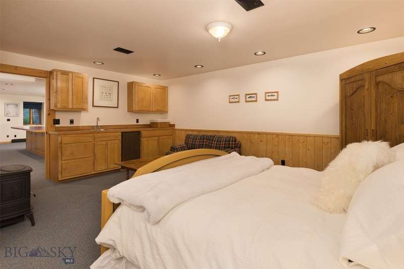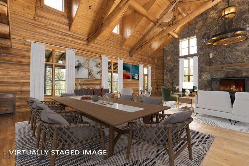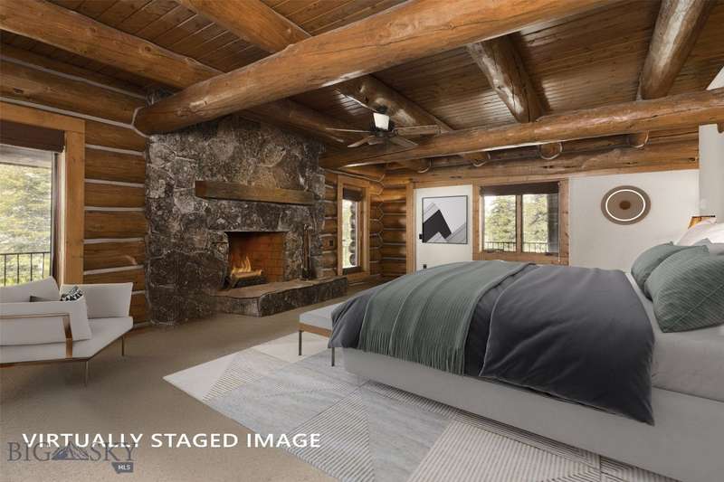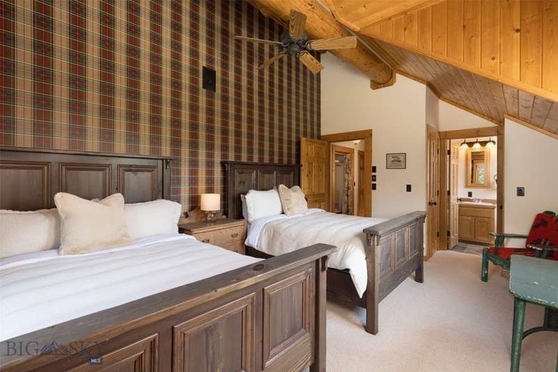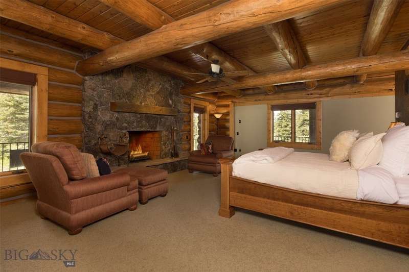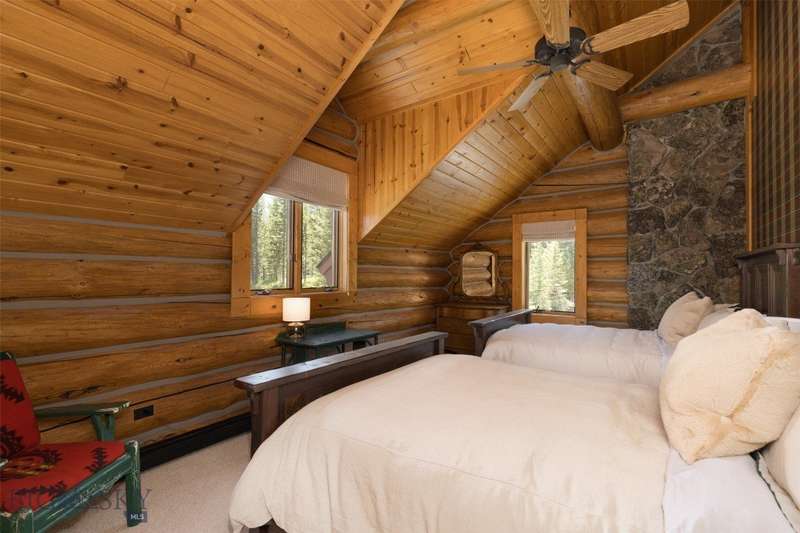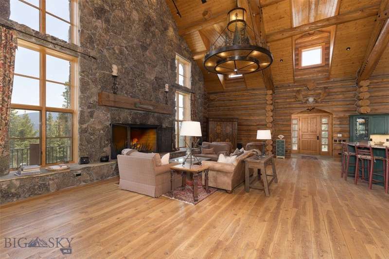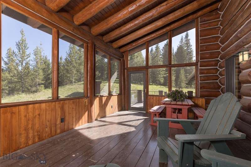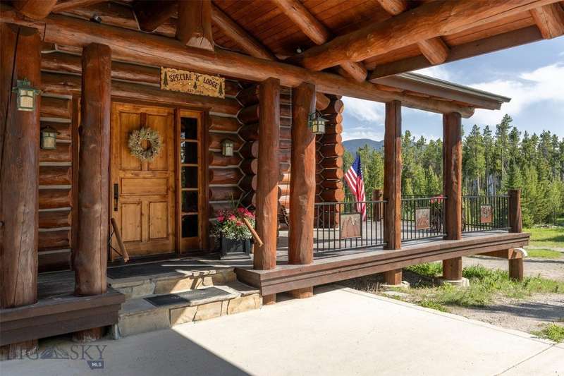 Welcome to the Special K Lodge! This spectacular 5BR/6BA, 5,451 sq ft luxury log home on a rare double-sized 40 acre lot in Big Sky's Elk Ridge Ranch is just 10 minutes from Big Sky Town Center and only 5 minutes to the iconic Gallatin River. The exceptional property offers unobstructed views of both Lone Mountain and the Spanish Peaks, creating a breathtaking backdrop year-round. Crafted with high-end finishes throughout, the home features a gourmet chef's kitchen outfitted with top-tier appliances, a massive floor-to-ceiling rock fireplace in the vaulted-ceiling great room, and five spacious bedrooms. The master bedroom is on the main level and boasts its own rock fireplace. Upstairs you'll find 2 additional en-suite bedrooms and a family room, and the lower level has an additional bedroom/bath, as well as a bunkroom with built-in bunks reminiscent of an old train car. Step outside onto the enormous 360 degrees wraparound deck perfect for entertaining or quietly soaking in the scenery and wildlife, and unwind in the private hot tub under Montana's big sky. Or enjoy your morning cup of coffee while sitting in the large screened-in porch off of the kitchen. This is true Montana living: private, peaceful, and simply unmatched.