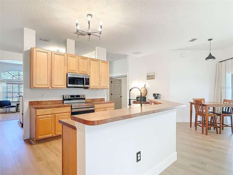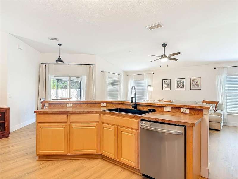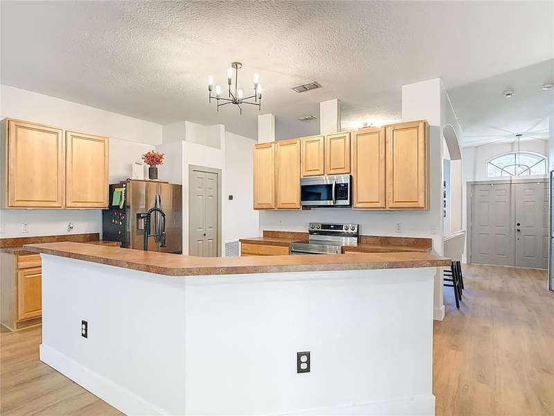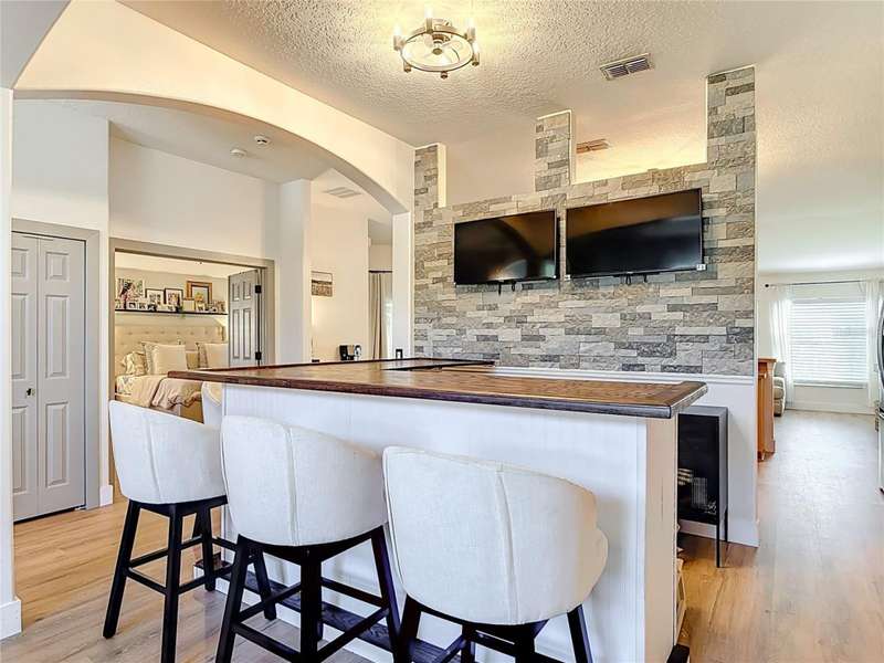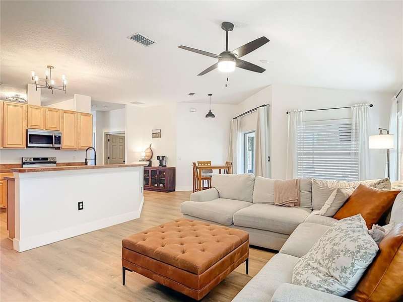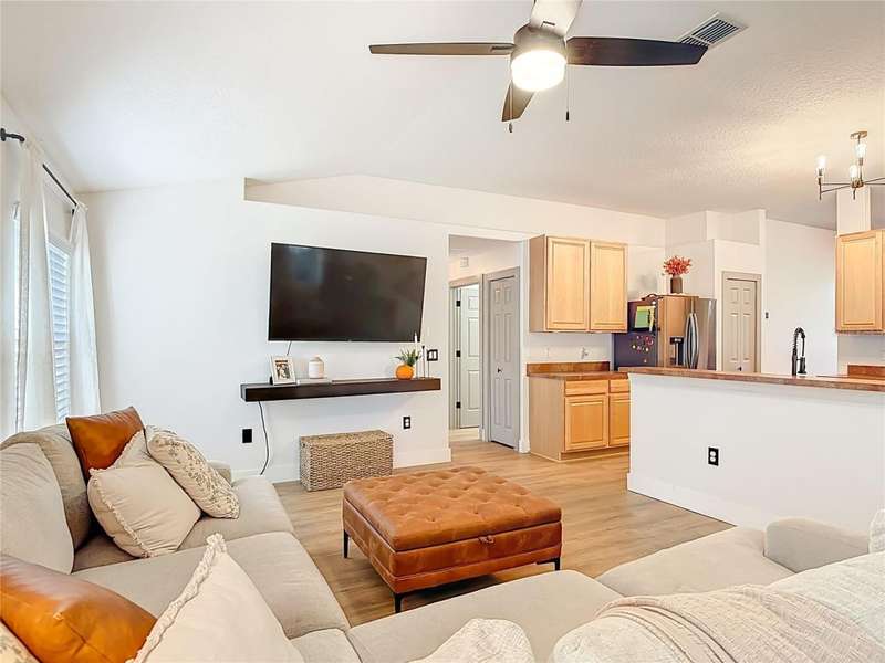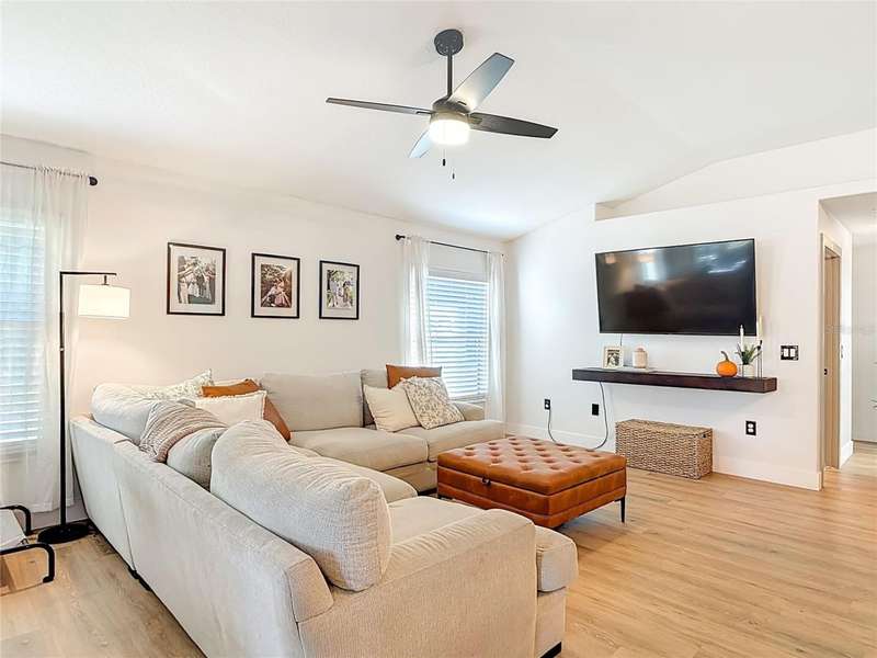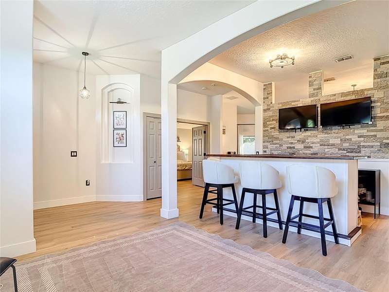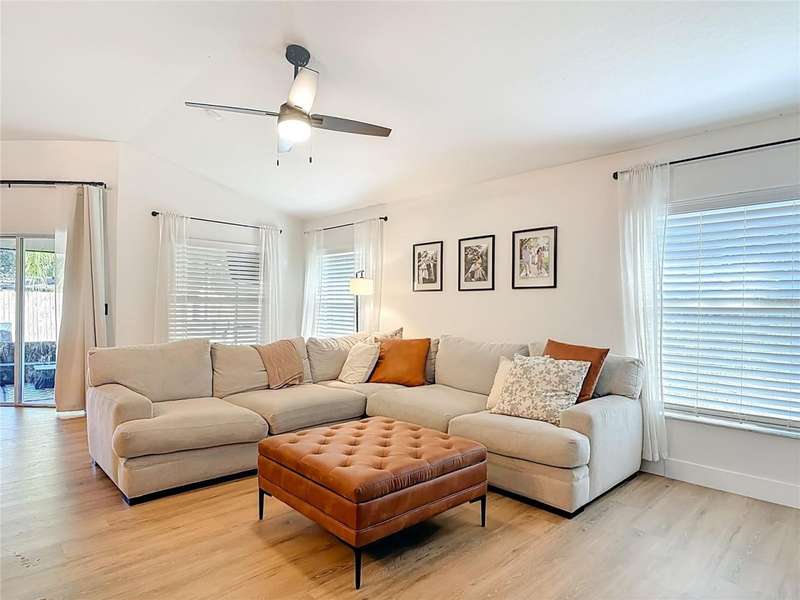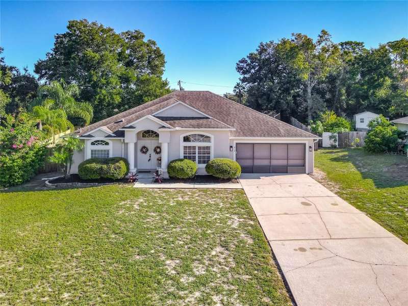 You Will Love This Spacious 3-Bed, 2-Bath Home On A Large .32-Acre Fenced Lot In A Quiet Neighborhood. Step Through The Double-Door Entry Into A Bright, Open Layout Featuring Cathedral Ceilings And Large Windows. Formal Living Room Has Been Converted To A Great Location To Watch The Big Game With It's Beautiful Custom Bar Area With Stone Accent Wall And Wood Countertop ,And Features Dual TVs So You Can Watch Two Games At One Time. The Home's Layout Creates A Warm And Inviting Space For Family And Friends To Gather. The Kitchen Offers Ample Space For Cooking And Gathering, With A Pantry, Breakfast Bar, And A Breakfast Nook That Opens To A Screened Lanai And Huge Backyard - Perfect For Entertaining. The Split Floor Plan Includes An Oversized Primary Suite With Sliders To The Lanai, Two Walk-In Closets, And A Spacious En-Suite Bath With Soaking Tub, Separate Shower, And Double Vanity. Two Additional Bedrooms Also Feature Walk-In Closets And Share A Full Guest Bath. You'll Also Love The Inside Laundry/Mudroom Off The 2-Car Garage. New LVP Flooring And Moulding Throughout. Newer Hot Water Heater. Newer Kitchen Appliances. Newer Roof (2017) And A/C (2016). And This Home Is In A Prime Location Near SR 415, I-4, Shopping, And Schools - Just 30 Minutes From The Beach Or Orlando - This Home Is A Must-See! Call Today To Schedule A Showing!