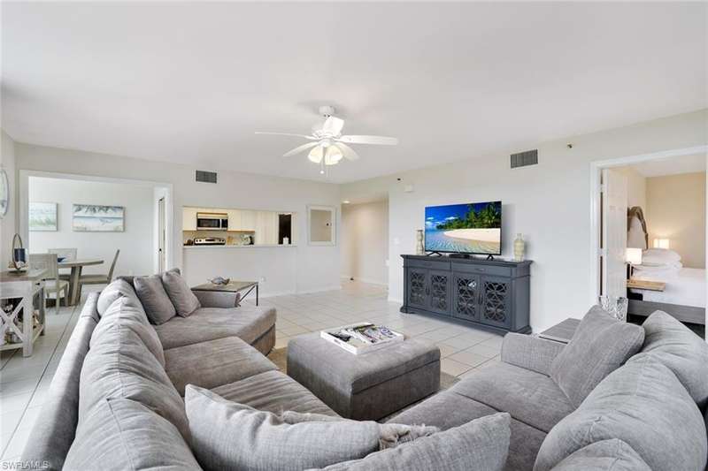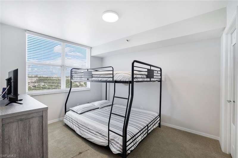 St. Nicole at Pelican Bay is available for December and January! This corner third floor unit features a split floor plan with three bedrooms, two baths, a large great room, white kitchen, and a separate dining area. The bedrooms are set up for your comfort, as well as your guests, with a King bed in the primary suite, a Queen bed in the second, and bunk beds in the third which are a Queen and a Full. The main living space has white tile floors and the bedrooms are carpeted. Enjoy sunsets from your open-air balcony overlooking the inviting pool area or dine al-fresco on your generous screened lanai. Hop on the near-by tram to visit the beach and beachfront private dining venues or take advantage of all the well appointed Pelican Bay amenities, high end shopping, and fine restaurants which are close by and available to you.