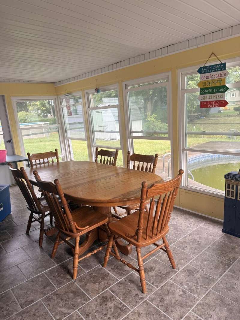 Welcome home to warmth and charm! This Tri-Level 3-bedroom, 1-bath home offers spacious living with a functional layout and fantastic outdoor amenities. The main level features a large living room with a wood-burning fireplace, a large dining area, and a 3 seasons room with insulated windows, perfect for year-round enjoyment close to the kitchen for all your entertaining needs.Upstairs you'll find three comfortable bedrooms and a full bath with beautiful well cared for natural hardwood floors. The finished lower level adds valuable square footage with flexible space for a rec room, home office, additional living area or additional storage. A two-car garage and whole-home water softener add convenience, while the pantry and abundant closet spaces provide excellent organization.Outside, enjoy the covered front porch, a backyard with an in-ground pool and diving board, and a generous outdoor living patio space ideal for entertaining. Located in Southgate with easy access to local amenities, this home combines comfort, space, and lifestyle.Schedule your showing today!