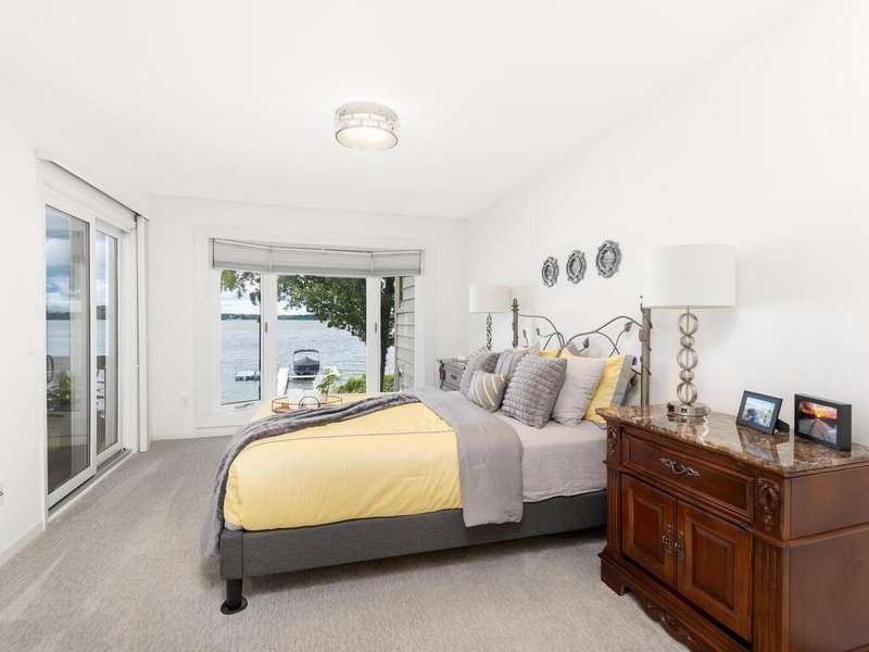 Enjoy carefree lakefront living on beautiful Lake Independence in an extraordinary light & bright townhome. Recently remodeled throughout with high end finishes, this luxury home features three bedrooms & three bathrooms with an attached two car garage. Spectacular Western-facing views of the lake are provided from multiple rooms on both levels. Wide-board acacia hardwood floors are throughout the home. Walk out to your patio & down to your dock to fish, swim & directly access your boat. Relax on your private deck, which overlooks the lake & the 500+ feet of lakeshore owned by the association. The interior is pristine & features open transitions from the kitchen to the dining & living areas with cozy combination gas/wood burning fireplaces. Additional storage can be found in the garage attic. Located next to the 2700 acre Baker Park Preserve, which provides year-round recreation including golf, hiking, biking & groomed cross-country trails. This home is located in a quiet & peaceful ten-unit townhome community. Ready to move in and make this home your own.
