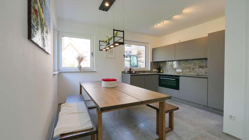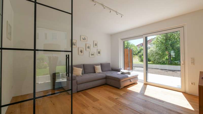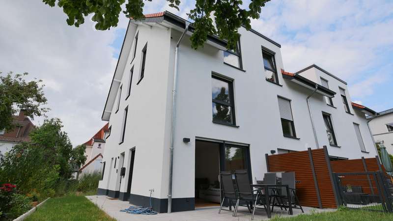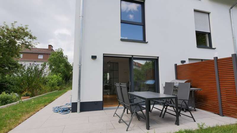 This end terraced house for sale is centrally located and impresses with its new construction, high-quality fittings and modern design. The generous room layout ensures a pleasant living atmosphere and offers plenty of space for the whole family. The house has a spacious living room with access to the south-facing terrace, which catches plenty of sunlight. A separate kitchen with high-quality electrical appliances and dining area offers plenty of space for cooking and eating. The adjoining corner garden invites you to relax outdoors and offers space for garden furniture and green plants. The underfloor heating combined with an efficient heat pump ensures cozy warmth and low heating costs. The modern heating system guarantees a pleasant temperature in every room of the house. The property not only impresses with its high-quality fittings, but also with its location. Shopping facilities, schools, nurseries and public transport are all in the immediate vicinity. The quiet residential area offers good connections to the highway and thus enables quick access to the surrounding cities. All in all, this end terraced house is an ideal option for families looking for a modern home with good connections and high-quality fixtures and fittings. We would be happy to arrange a viewing appointment to show you the house in person and give you the opportunity to see this attractive offer for yourself. The energy certificate was not available at the time the advertisement was created and will be submitted at the time of viewing.