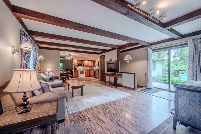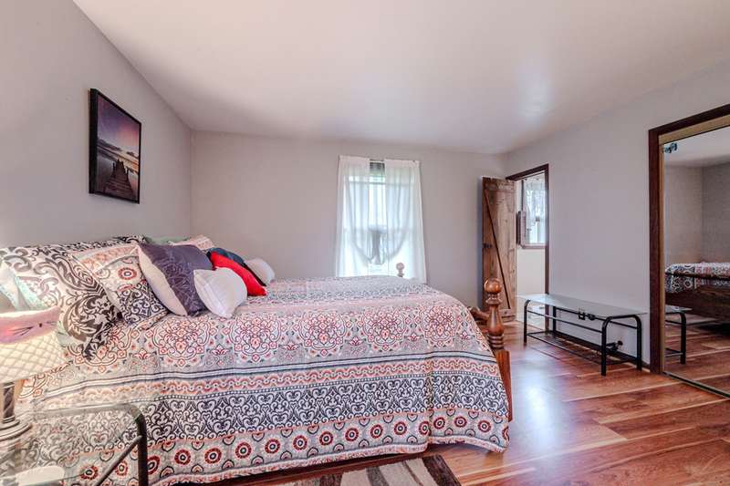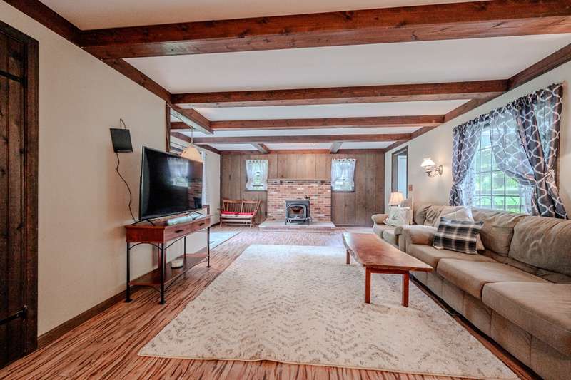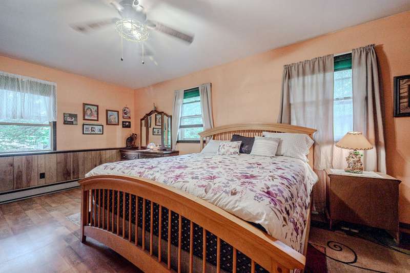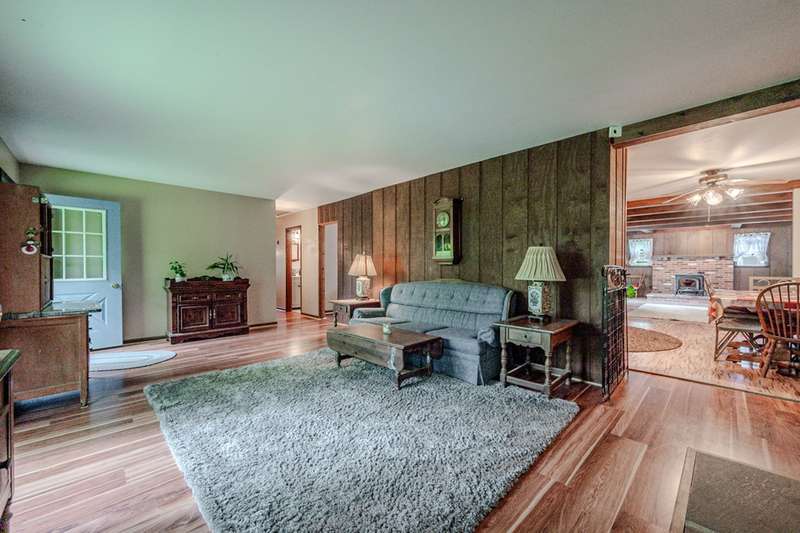 Showings begin on Wednesday, 5/21. Looking for 6 bedrooms and a barn? Look no further! This sprawling ranch home will fit the bill! All 6 bedrooms and 3 full bathrooms are all on the main level, though split between separate ends of the home. Perfect for multi-generational living! All 6 bedrooms are spacious and have plenty of closet space. The large living room in the front has a lovely brick fireplace. It leads to the open kitchen, which, in turn, leads to the family room with beamed ceiling. The family room also has a woodstove and a sliding door to the back yard. The home has baseboard heat, each individually controlled so if you're not using some of the bedrooms it's easy to close it off. The sellers have used window air conditioning units over the years. The big draw here is the lovely 4.3 acre lot! Perfect for horses! There's a 2 story barn that has 3 garage bays in front and 4 horse stalls in the back side. There's also a 2nd floor hayloft. Bring your horses, bring your cars! So many possibilities!