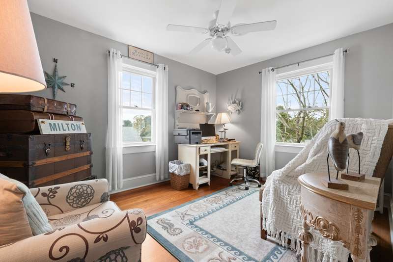 * Highly Motivated Seller * Welcome to this exquisite Colonial-style residence in the heart of Milton, Delaware, where timeless architecture seamlessly blends with modern sophistication, all while capturing serene views of Wagamons Pond. This beautifully appointed 4-bedroom, 3-bath home offers exceptional comfort and versatility, including two primary suites, one conveniently located on the main level and another upstairs featuring a private balcony with tranquil pond views. Inside, you’ll find a spacious and inviting living area anchored by a wood-burning fireplace with dual access to the screened-in porch, the perfect setting for morning coffee or evening gatherings. The open-concept kitchen and dining area provide an ideal flow for entertaining, complete with modern appliances and generous space for culinary creativity. Notable interior details include an unfinished basement for future customization, an attic for additional storage, and ceiling fans throughout to enhance comfort. A true showpiece entryway, the brand-new custom Masterpiece Premium front door , crafted to fit 85.25” x 65.25” welcomes guests with style and distinction. Step outside to a fenced-in backyard, featuring a relaxing hot tub and ample space for outdoor enjoyment. Car enthusiasts and hobbyists will appreciate the garage/pole barn, which feature a separate 200-amp service, fully drywalled right side, and insulation in both garages. The space is wired for a generator, providing seamless backup power when needed. A separate shed offers even more storage options. Enjoy central air conditioning and efficient heat pump systems ensuring year-round comfort, all while being just minutes from Milton’s boutique shopping, dining, and historic charm.
