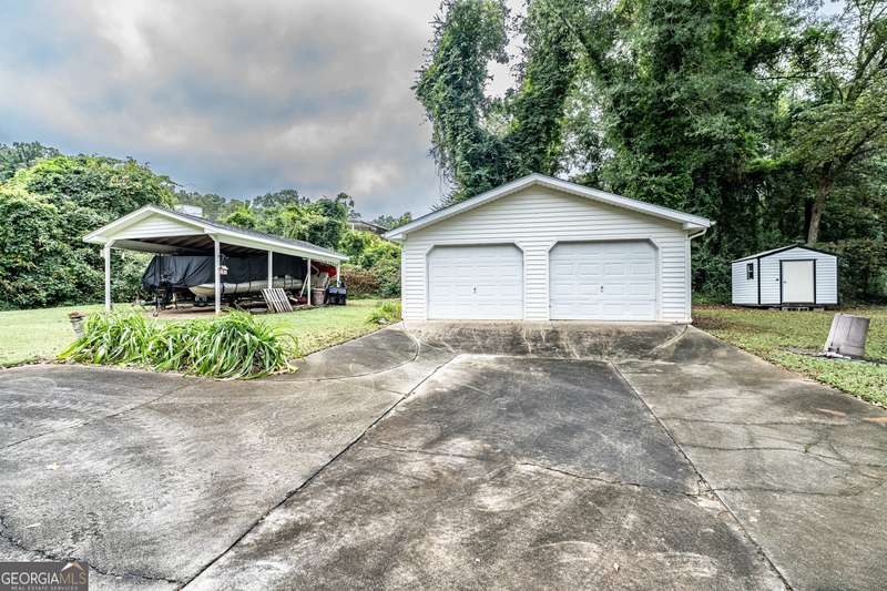 Welcome to this well-maintained 3-bedroom, 2-bathroom home offering plenty of space and versatility! Inside, you'll find a large open concept living and dining area with beautiful hardwood floors, a spacious kitchen with a breakfast area, and a huge mudroom/laundry room. There is also an additional den and a separate office area, perfect for working from home or an extra living space. The attached one-car garage could easily double as a workshop. Outside, enjoy a detached two-car garage, an outbuilding for extra storage, and a covered parking area ideal for a boat or RV.