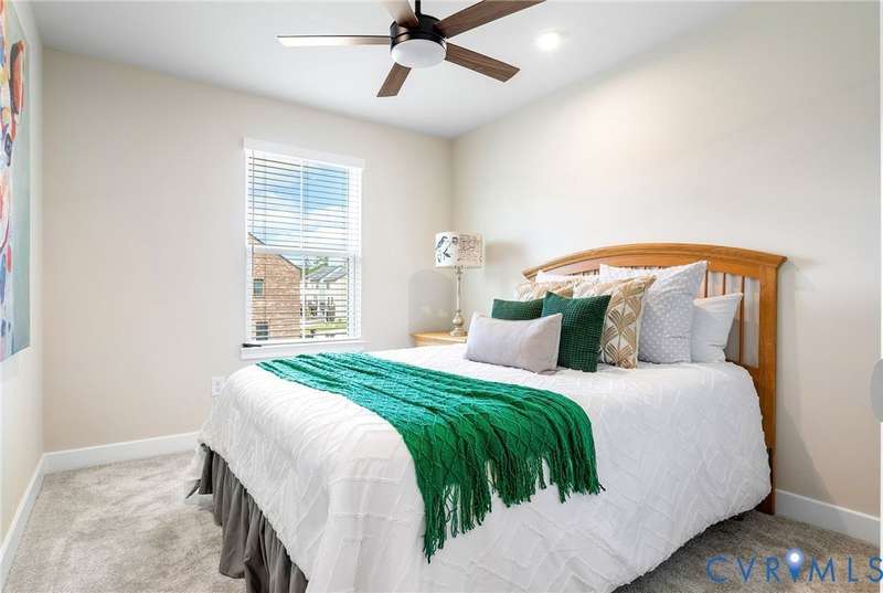 Welcome to 1255 Lazy River Road, a newly constructed 4-bedroom, 3.5-bath Ballad Model townhome in Centerpointe Townes-where upscale design meets unbeatable convenience in the sought-after Midlothian High School district. Nestled in the desirable Brandermill Parkway area, this home offers elegance, comfort, and lifestyle within minutes of healthcare, shopping, parks, dining, and recreation, plus access to a community fitness center and social spaces. The exterior features a partial brick front for curb appeal, floodlights for security, and a freshly painted one-car garage with driveway parking. Inside, the foyer welcomes you with new flooring, nickel finishes, and fresh paint. The first floor includes a full bath and a versatile bedroom/office/guest space with ceiling fan and blinds, plus access to a 12x10 patio-ideal for casual entertaining. Upstairs, oak stair accents lead to the heart of the home: an open-concept great room, kitchen, and dining area. The kitchen shines with a large island, stainless-steel appliances including a gas stove, pantry, tile backsplash, under-cabinet lighting, crown molding, and satin nickel hardware. The great room is bright with windows, ceiling fan, and blinds, while the dining room opens to a freshly stained balcony overlooking a quiet oasis. On the third floor, two bedrooms with ceiling fans and blinds share a full bath with ceramic surround. A nearby laundry room adds convenience. The rear owner's suite features a walk-in closet, storage nook, tray ceiling, ceiling fan, and private bath with double vanity and upgraded roman shower-your perfect retreat. Energy-efficient systems provide year-round comfort, and the HOA maintains the yard for low-maintenance living. Just minutes from St. Francis Medical Center, Westchester Commons, Rt. 288, and Powhite Parkway, Centerpointe Townes offers the perfect blend of city access and suburban charm. Don't miss this rare opportunity to own a move-in ready, modern townhome in the heart of Midlothian.