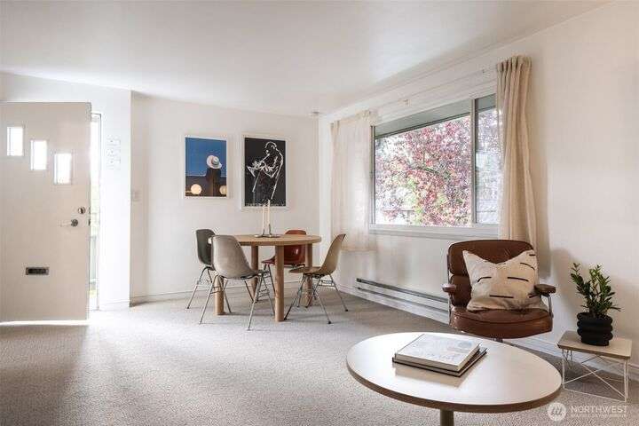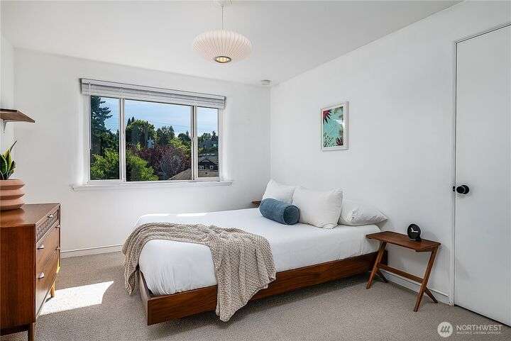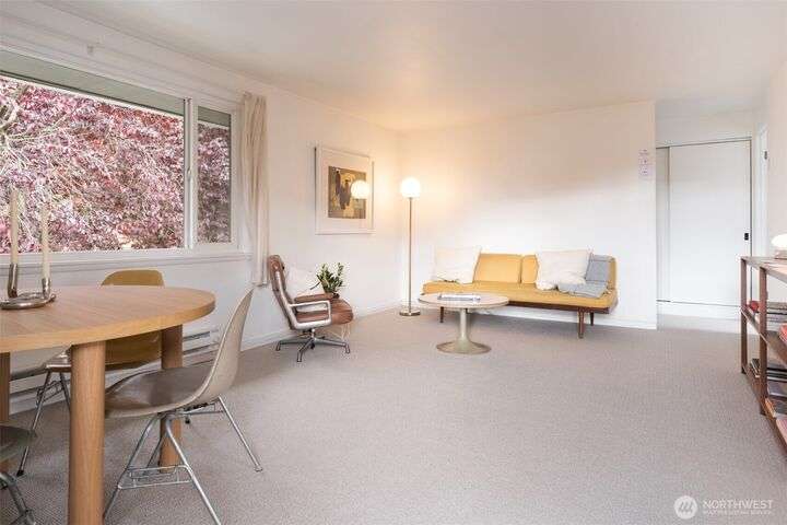 NO RENTAL CAP. Mid-century architecture, a style famous for clean lines, minimalist aesthetics and connection to nature. Surrounded by mature native landscaping this 2nd floor, corner unit, 1940s build portrays the description entirely. A private exterior entrance opening to a sprawling, freshly carpeted multi-functioning great room. One can't help but admire the sleek lines, coved door frames and detailed sills throughout. Wood counter tops wrap around Frigidaire appliances highlighting a sun-soaked kitchen beckoning extended coffee mornings ideal for sparking daily motivation to explore the neighborhood's vast amenities. Lack of rental cap, proximity to UW and Children's Hospital sure to maximize investment opportunity.