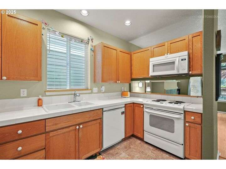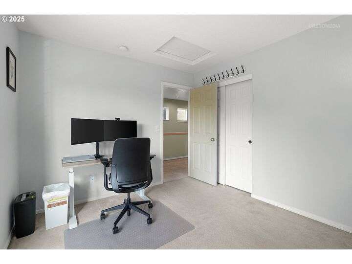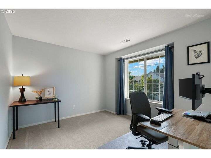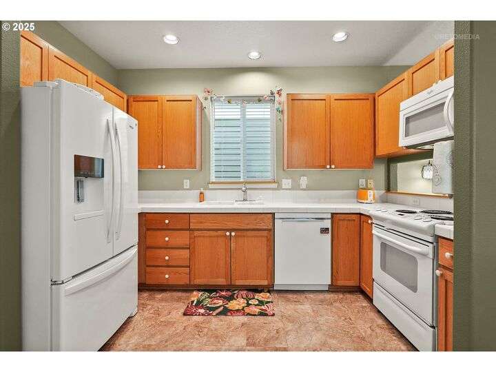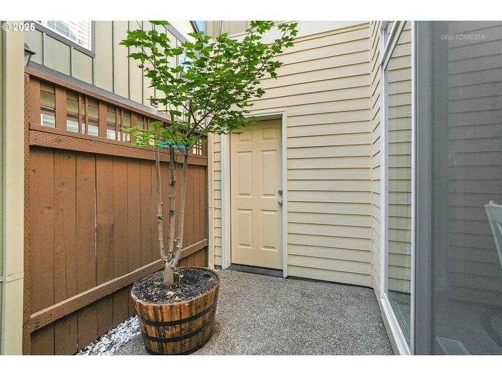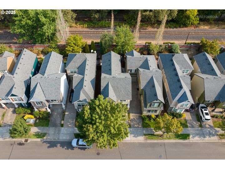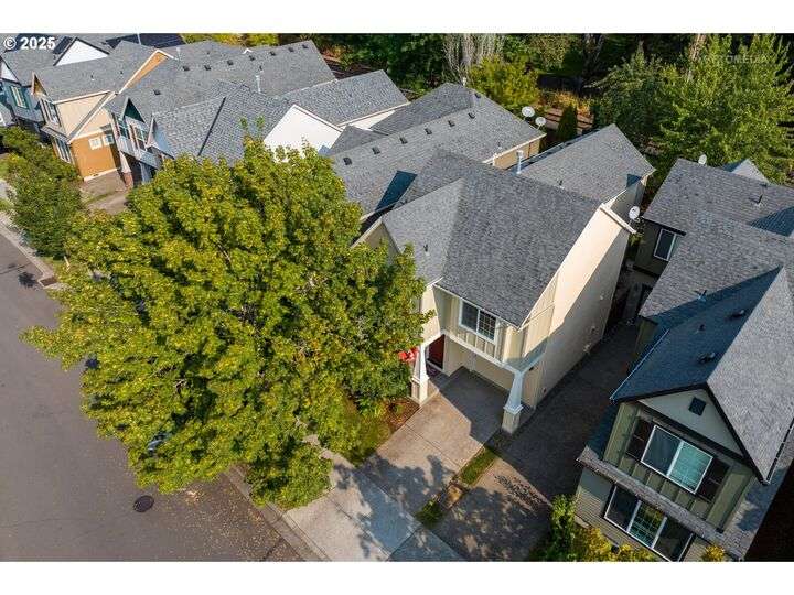 Come home to serene elegance in Arbor Roses. Here, in a private setting that backs to Shute Park within walking distance of Jackson Bottom Wetlands, is your opportunity to enjoy the finest in Washington County neighborhood living. Step into a welcoming foyer and note the high ceilings with an easy-flowing floorplan. Make your way to the tastefully appointed kitchen and appreciate the suite of well cared-for appliances with ample counter space & pantry alongside the dining area. The living room, with its gas fireplace and outsized windows to enclosed patio & planting area, equips you for small gatherings or intimate moments. Upstairs are three spacious bedrooms, of which the primary looks into old-growth evergreens and over Hillsboro's most iconic park. Working from home? Convert the corridor semi-loft into an office space. Driving to work? Cherish the short commute to the Intel Triangle and the quick jaunt to light rail. Burning cash on a club membership? Here you have a well-run HOA with facilities ranging from gym to pool to meeting room. Aiming to minimize your chores? Front yard landscaping is handled by the association as well. Looking for access to the International Baccalaureate program? The renowned Minter Bridge/South Meadows/Hilhi educational channel has it. Recently painted, with new HVAC equipment and washer & dryer included, it's hard to imagine a more robust turn-key package. Imagine how it would blend with & broaden your lifestyle to plant your flag here on Albertine! [Home Energy Score = 7. HES Report at https://rpt.greenbuildingregistry.com/hes/OR10241997]