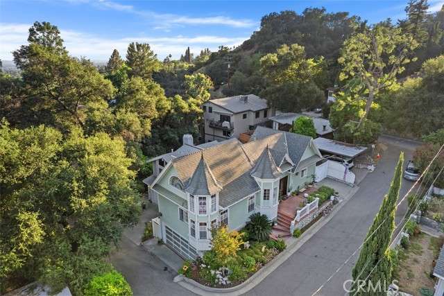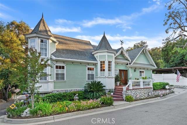 Tucked away, in a historic town called Sierra Madre. At the foothills of the San Gabriel Valley and below the southern edge of the Angeles National Forest. Surrounded by lush green trees and beautiful wild flowers, the wind whistles through. Crisp air and occasional wild life make for a peaceful setting no matter the time of day. This timeless Victorian masterpiece, is now open for new memories to call your own. Newly built in 1989, with the great outdoors in mind, windows were placed throughout the home to welcome the nature that surrounds. Backed to a Private Road is a 2 car garage. A third option carport is on the North-West side of the property. Morning coffee or afternoon tea favorite spots are out front on the porch bench or in the covered sun room open breezeway. Meticulously maintained and well-loved. Upon entering is a cozy living space. An open floorplan makes for a spacious feel. The expansive master suite is located on the main floor. A gorgeous wooden staircase provides optional separate living with 2 additional bedrooms, a full bath, and a sitting room. French doors lead to a near wrap around patio currently enjoyed as an outdoor lounge area. Additionally, an estimated 300 square foot attic space (not included in advertised square footage) with high ceilings has been converted into a fully functionally living space. Feel like taking a walk or hike? This is the place to do it! Explore local beautiful sites, curbless roads, churches, and Downtown shopping and dining. With the city life close by, you will find this location, the perfect getaway, to call home.