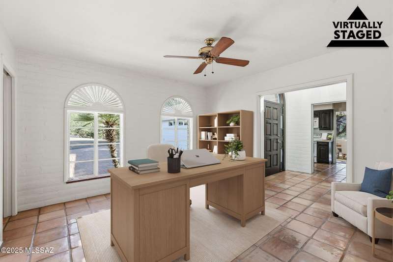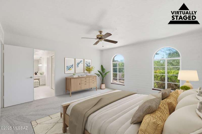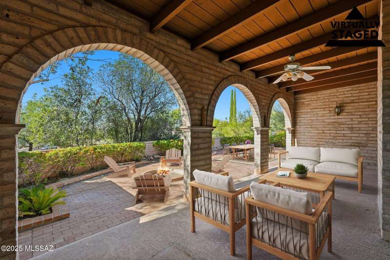 Rarely Available, Stand-alone Skyline Country Club ''Vivienda.'' Charming and Distinctive Signature Features of Spanish Mission Style Architecture. Beautifully Preserved, Lovingly Maintained with all the Authentic Vintage Appeal still intact. Adobe Construction, Arched Doorways & Windows, High Beamed Ceiling, Large-Scale, Light-filled Rooms in a Sprawling Layout. Gracious Entry, Formal Living & Dining Rooms with Gas Fireplace, Eat-in Kitchen and a Large Master Suite with Lots of Closet Space. New Roof & Newer HVAC. New Tile & Carpet. Expansive Porch Arcade and Private Patio for Tucson's Indoor-Outdoor Living. Deep Setback, Majestic Front Elevation that wholly integrates with the Serene Environment. Fabulous HOA includes limited privileges at Skyline CC. You'll love living here!