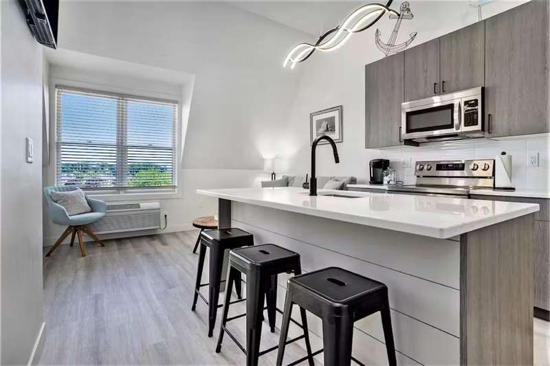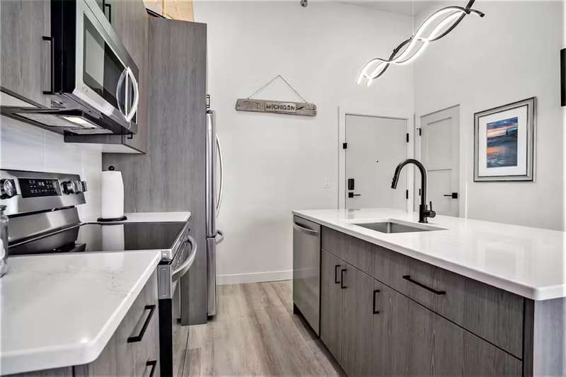 Welcome to the Colonial Condominiums, conveniently located in the heart of downtown South Haven along the shores of the Black River. This renovated 1 bedroom, 1 bath condo is just a short stroll from the city's best dining, shopping, and entertainment. The modern kitchen features custom cabinetry, quartz countertops, and premium stainless appliances, flowing into a living area with stunning Black River views. The spa-like bath offers sleek tile work and an oversized shower. The serene bedroom boasts a custom built king bed and closet. Outside amenities include a two-tiered deck providing the perfect setting to relax or entertain with picturesque harbor views. Whether a personal retreat or a savvy investment, this turn-key condo welcomes summer rentals and has a strong rental history.