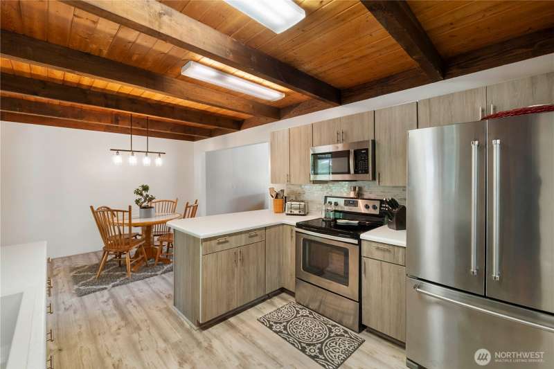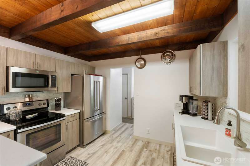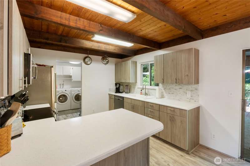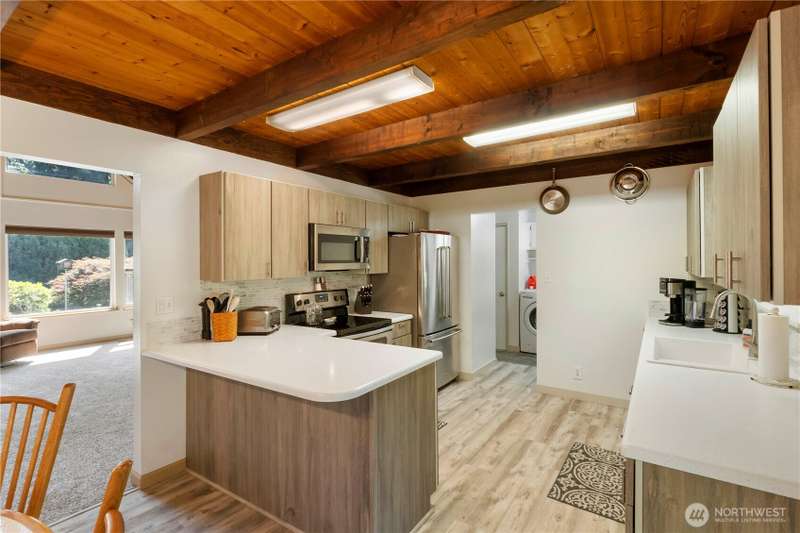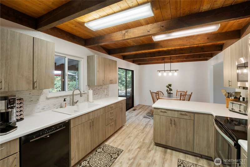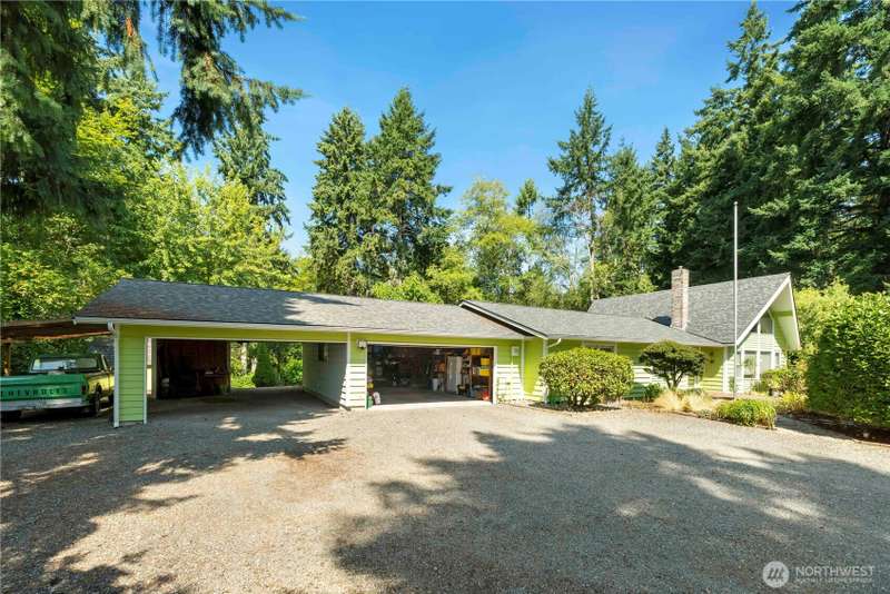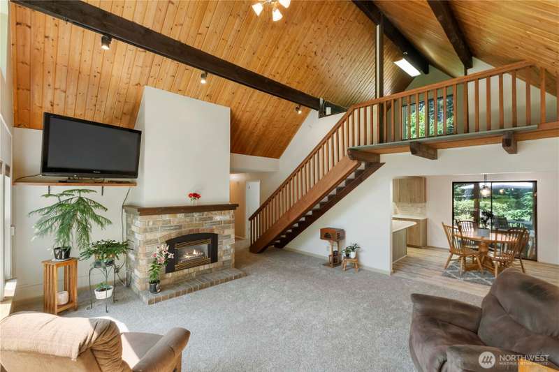 This 3-bed, 2-bath, 1,636 sq. ft. home truly has it all. Step inside to a bright, spacious living room featuring vaulted ceilings and a cozy gas fireplace. The oversized loft provides endless options—office, media room, or play space. The fully updated 2023 kitchen boasts sleek stainless steel appliances, abundant cabinetry, and waterproof vinyl flooring throughout. All three bedrooms are generously sized, offering comfort. From the dining room, access the sunroom with three entry points, opening to a large deck and propane fire pit surrounded by mature landscaping. New 50 yr roof in 2021. Enjoy plenty of covered parking, RV power hookup, and a private acre on a quiet dead-end street, just minutes from freeway access and major amenities.