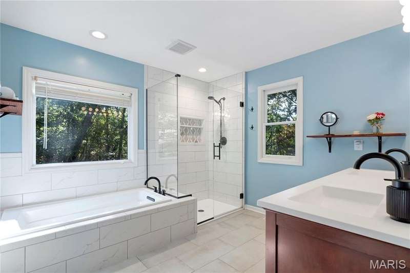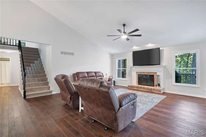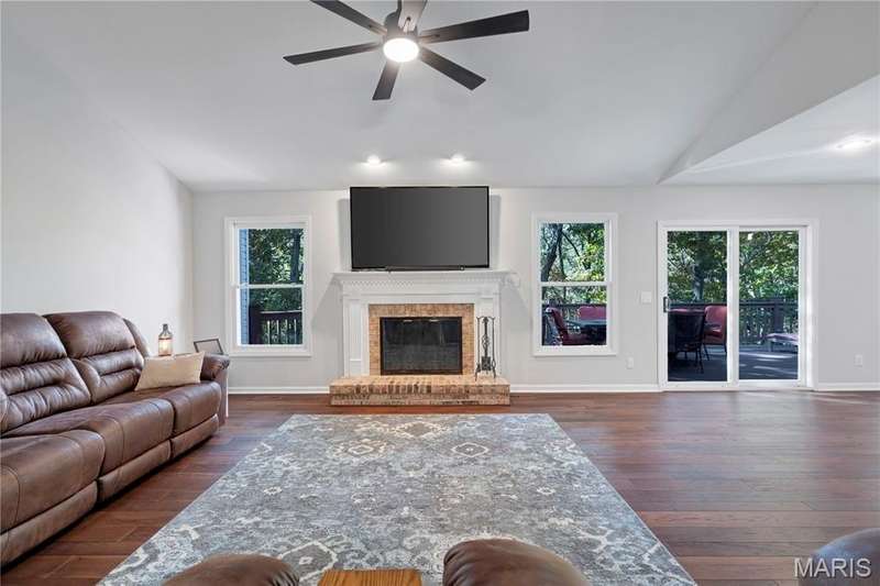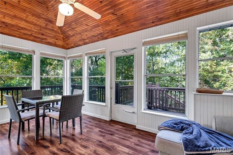 NEW ROOF PRIOR TO CLOSE! Discover privacy, peace, and prime location in this beautiful five-bedroom, 4 full bath 1.5-story home nestled in the highly sought-after Ossenfort area of Wildwood. Set on three picturesque acres, this property offers the perfect blend of natural serenity and refined living. Step inside to find warm hardwood floors, sun-drenched oversized windows, and incredible views from every angle. The entry offers a home office and dining flex space, trimmed in crown molding. Vaulted ceilings in the great room with a wood burning fireplace and treetop views offer a great place for gatherings. The designer kitchen is for both everyday living and entertaining, seamlessly connecting to the main living spaces and the outdoors. The luxury primary suite on the main level features a spacious bedroom and spa-inspired bath, while two generous bedrooms upstairs provide comfort and flexibility. The finished lower level adds even more living space with a recreation room, bedroom, full bath, and walkout access to the patio —an ideal setting for evenings under the stars. HVAC and septic 2020, all lighting has been upgraded, newer fixtures/fans, added water closet in primary, smart home, invisible dog fence, replaced all door handles/hinges, freshly painted throughout. Enjoy the tranquil surroundings from the screened porch, perfect for morning coffee, quiet reading, or hosting friends while taking in the views. Experience elevated country living just minutes from Wildwood’s amenities—where nature, luxury, and privacy meet.