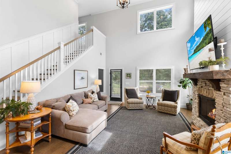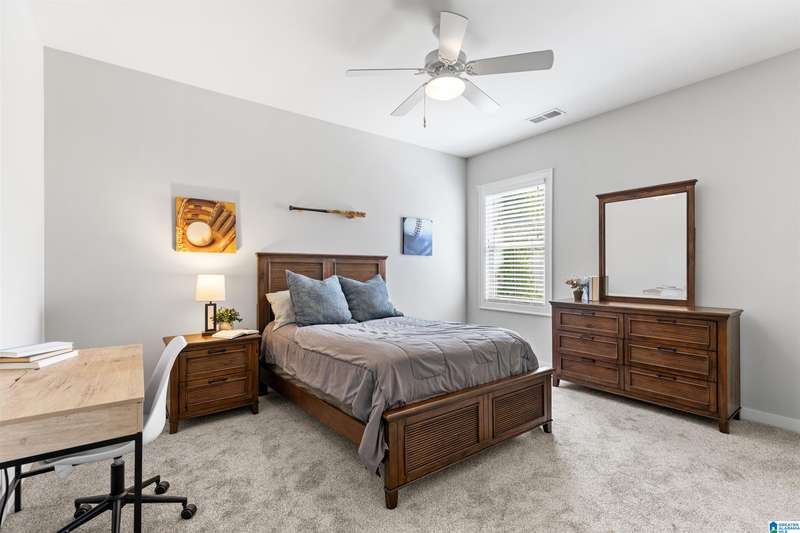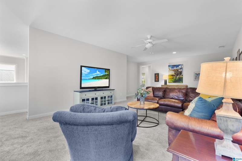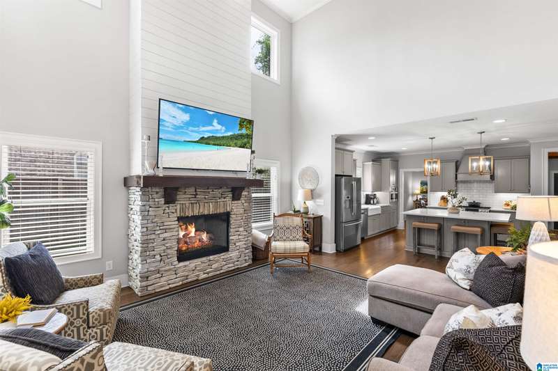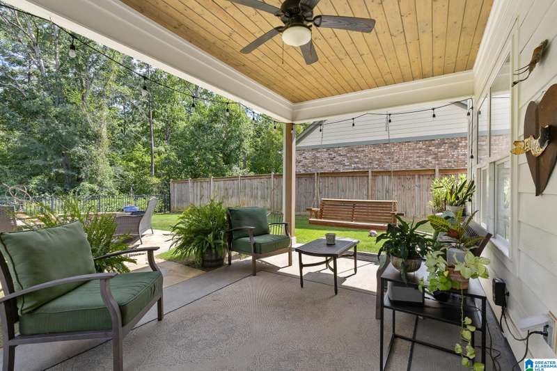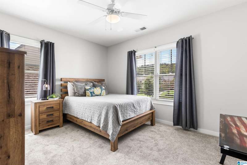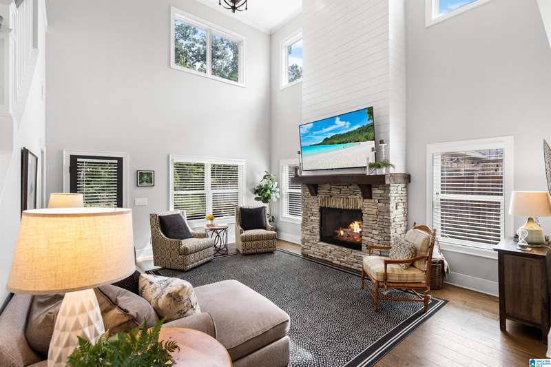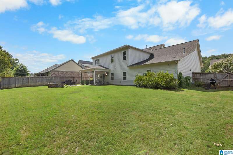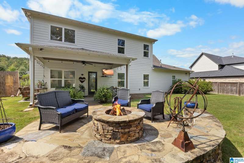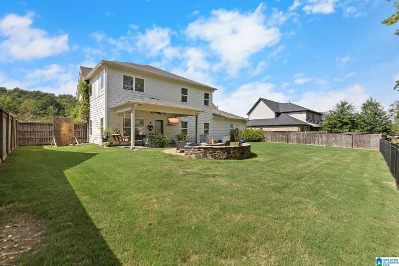 It's NOT just a backyard, take a short walk to Fishermans Point to fish every evening or walk thru the scenic trails. This 5BR, 4BA home has been loved by only one owner & is located in one of Hoover’s most desirable communities. Before you even walk into the house, you will be tempted to sit & rock on the front porch that overlooks a large green space. The main lvl features a formal dining area + a flex room that is perfect for a home office. The family room has soaring ceilings with a stacked stone FP & opens to a private backyard w/a covered patio complete with a firepit. The primary suite is on the main lvl and an ensuite BA featuring dbl vanities, soaking tub, separate shower & a generous walk-in closet. The kitchen has a large island, quartz countertops & a gas cooktop. Upstairs has a huge bonus room, 3 add’l BRs & 2 BAs—ideal for kids, guests, or hobbies. New carpet. Enjoy resort-style amenities including clubhouse, pool, lake, fitness, pickleball, biking trails, & wiffle ball.
