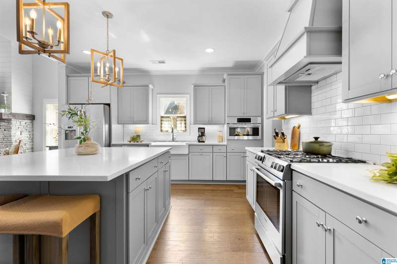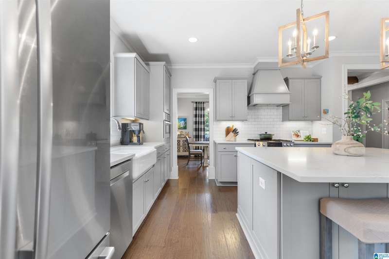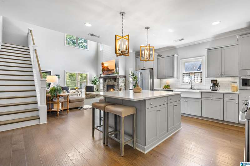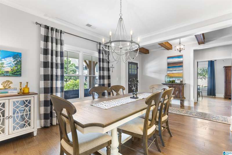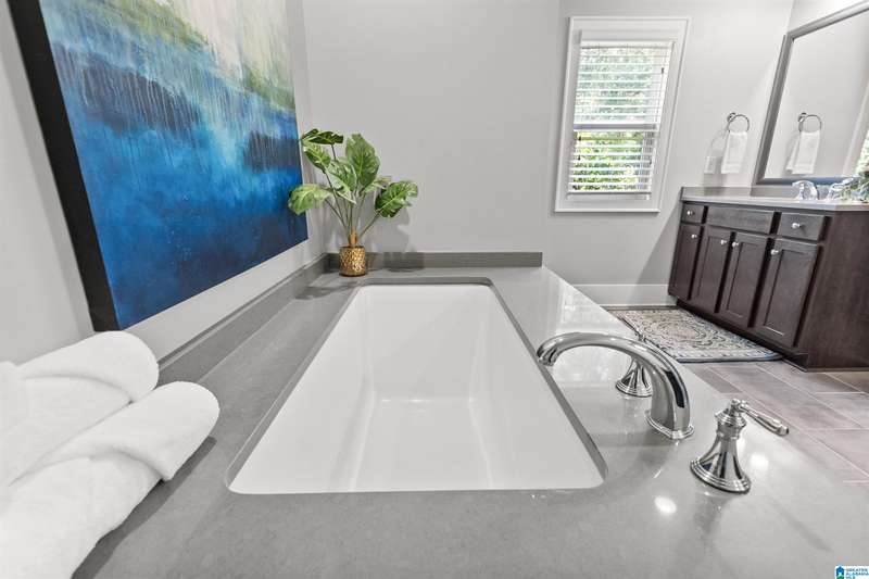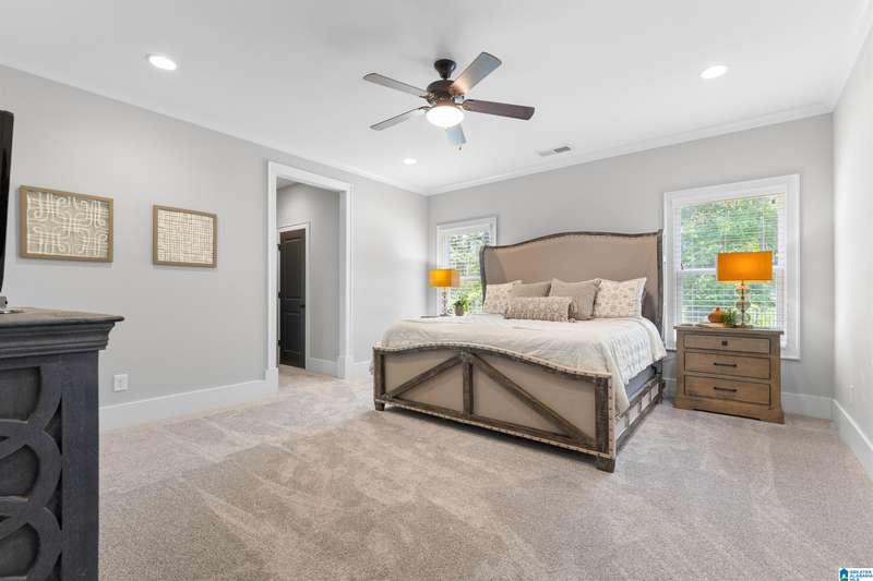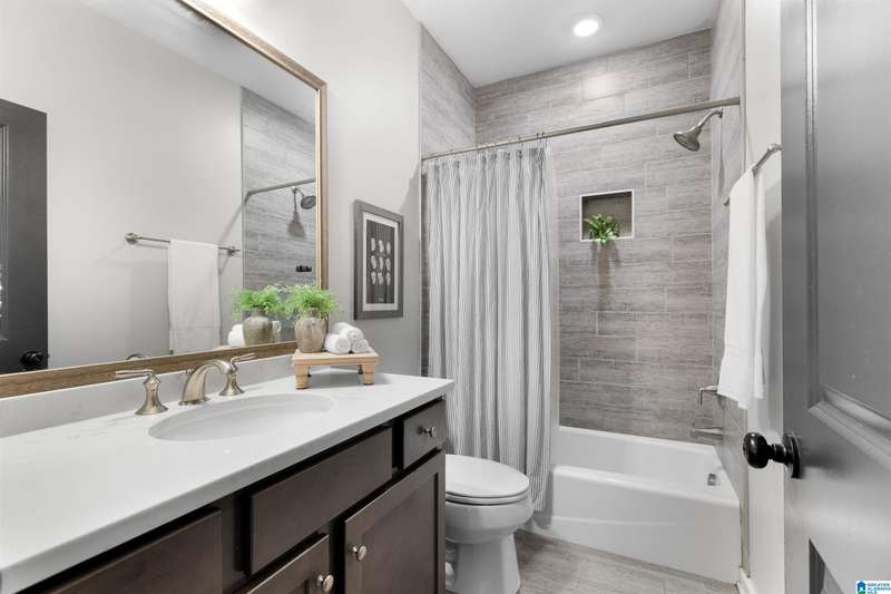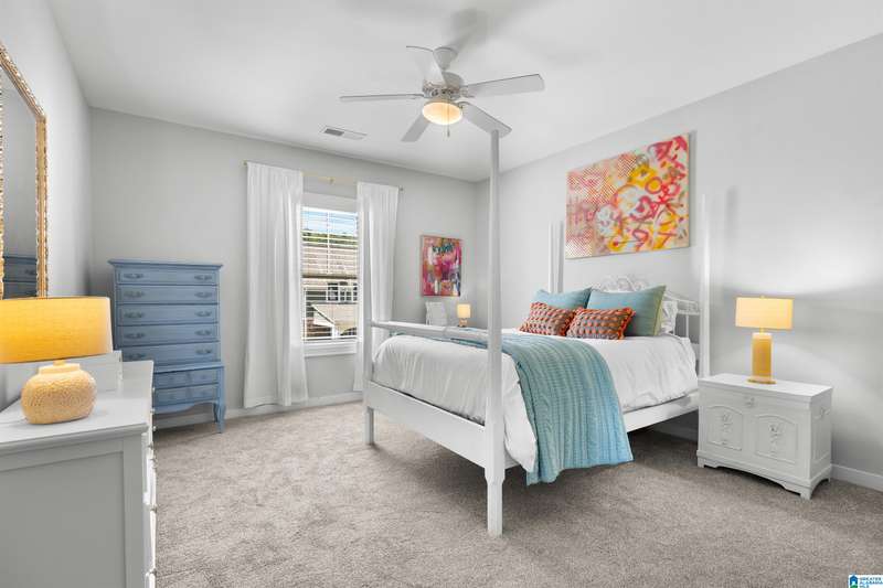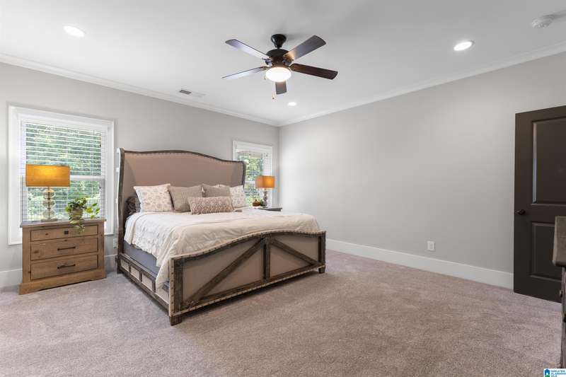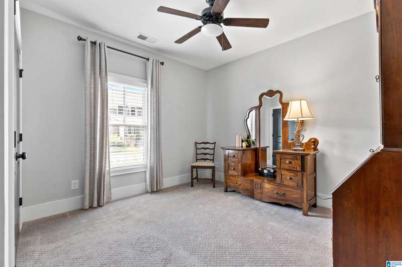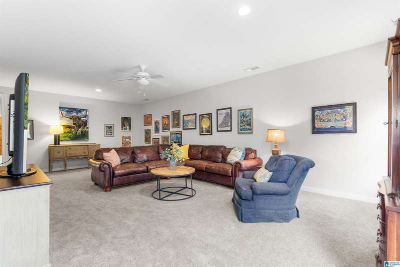 It's NOT just a backyard, take a short walk to Fishermans Point to fish every evening or walk thru the scenic trails. This 5BR, 4BA home has been loved by only one owner & is located in one of Hoover’s most desirable communities. Before you even walk into the house, you will be tempted to sit & rock on the front porch that overlooks a large green space. The main lvl features a formal dining area + a flex room that is perfect for a home office. The family room has soaring ceilings with a stacked stone FP & opens to a private backyard w/a covered patio complete with a firepit. The primary suite is on the main lvl and an ensuite BA featuring dbl vanities, soaking tub, separate shower & a generous walk-in closet. The kitchen has a large island, quartz countertops & a gas cooktop. Upstairs has a huge bonus room, 3 add’l BRs & 2 BAs—ideal for kids, guests, or hobbies. New carpet. Enjoy resort-style amenities including clubhouse, pool, lake, fitness, pickleball, biking trails, & wiffle ball.