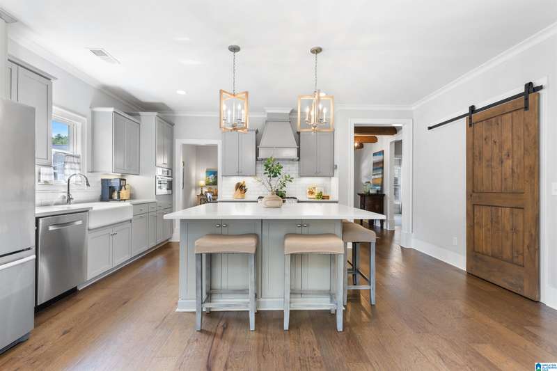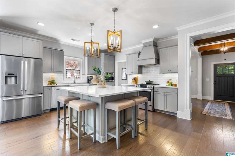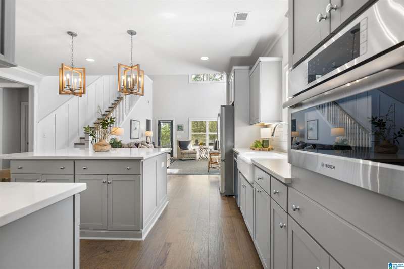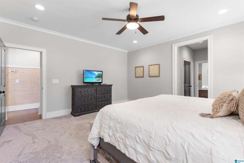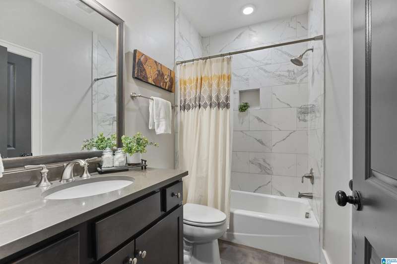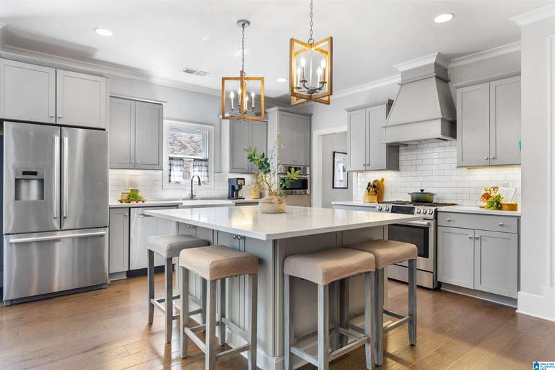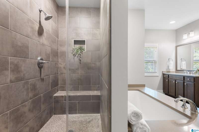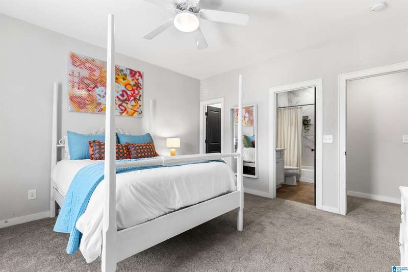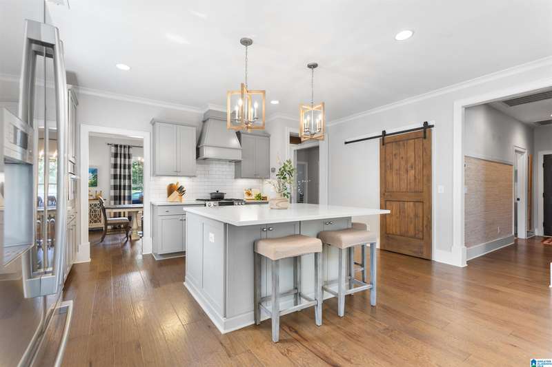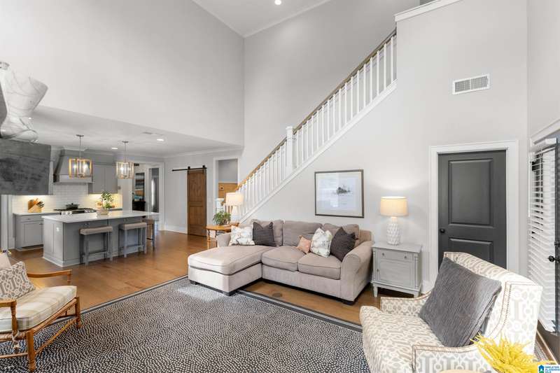 It's NOT just a backyard, take a short walk to Fishermans Point to fish every evening or walk thru the scenic trails. This 5BR, 4BA home has been loved by only one owner & is located in one of Hoover’s most desirable communities. Before you even walk into the house, you will be tempted to sit & rock on the front porch that overlooks a large green space. The main lvl features a formal dining area + a flex room that is perfect for a home office. The family room has soaring ceilings with a stacked stone FP & opens to a private backyard w/a covered patio complete with a firepit. The primary suite is on the main lvl and an ensuite BA featuring dbl vanities, soaking tub, separate shower & a generous walk-in closet. The kitchen has a large island, quartz countertops & a gas cooktop. Upstairs has a huge bonus room, 3 add’l BRs & 2 BAs—ideal for kids, guests, or hobbies. New carpet. Enjoy resort-style amenities including clubhouse, pool, lake, fitness, pickleball, biking trails, & wiffle ball.